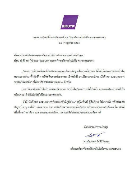 จดหมายเปิดผนึกจากอธิการบดี มหาวิทยาลัยเทคโนโลยีราชมงคลพ […]
