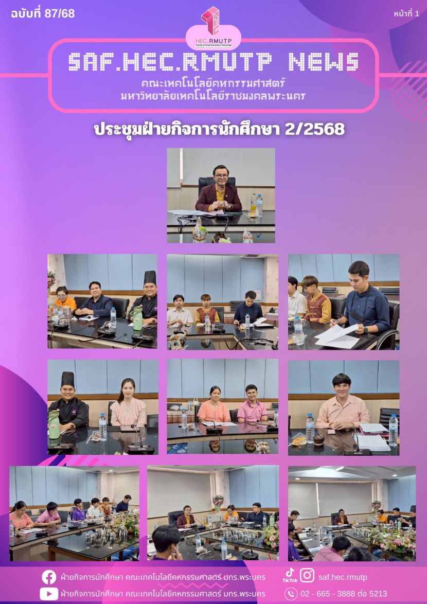 ฝ่ายกิจการนักศึกษา คณะเทคโนโลยีคหกรรมศาสตร์ มทร.พระนคร จัดประชุมฝ่ายกิจการนักศึกษา ประจำภาคการศึกษาที่ 2/2568