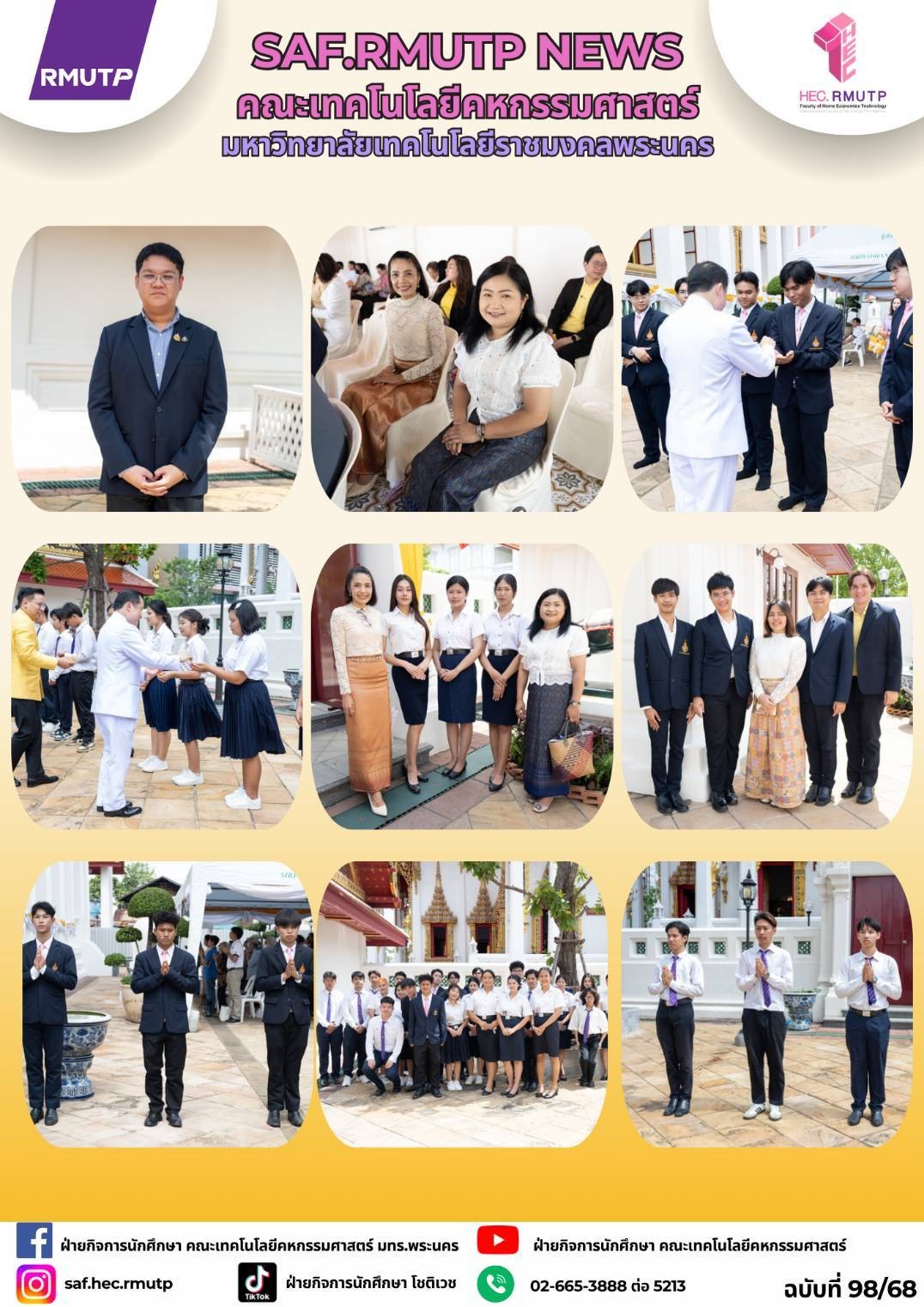 โดยมี ผศ.ดร.ธนภพ โสตรโยม คณบดีคณะเทคโนโลยีคหกรรมศาสตร์ มทร.พระนคร ผู้ช่วยศาสตราจารย์ ดร.เชาวลิต อุปฐาก รองคณบดีฝ่ายกิจการนักศึกษา พร้อมด้วย คณาจารย์ บุคลากร และนักศึกษาคณะเทคโนโลยีคหกรรมศาสตร์ มทร.พระนคร เข้าร่วมพิธี เมื่อวันที่ 18 ตุลาคม 2568 ณ พระอุโบสถวัดเทวราชกุญชร วรวิหาร เขตดุสิต กรุงเทพมหานคร