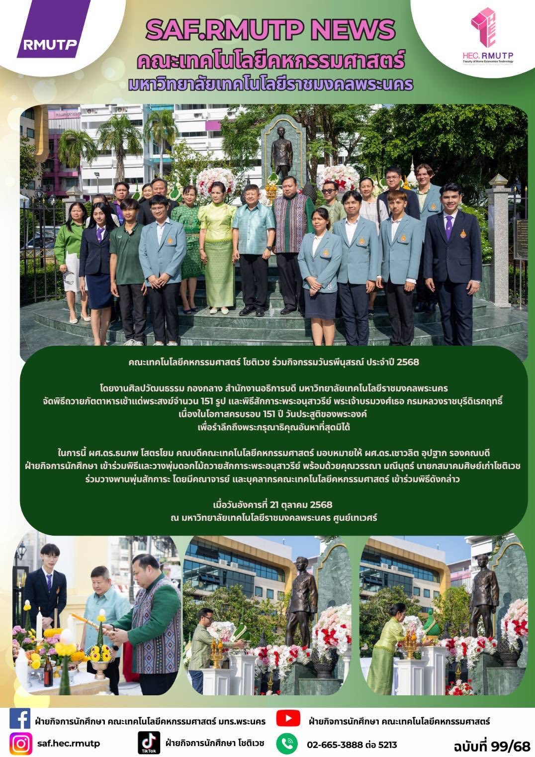ในวันอังคารที่ 21 ตุลาคม 2568 ณ มหาวิทยาลัยเทคโนโลยีราชมงคลพระนคร ศูนย์เทเวศร์