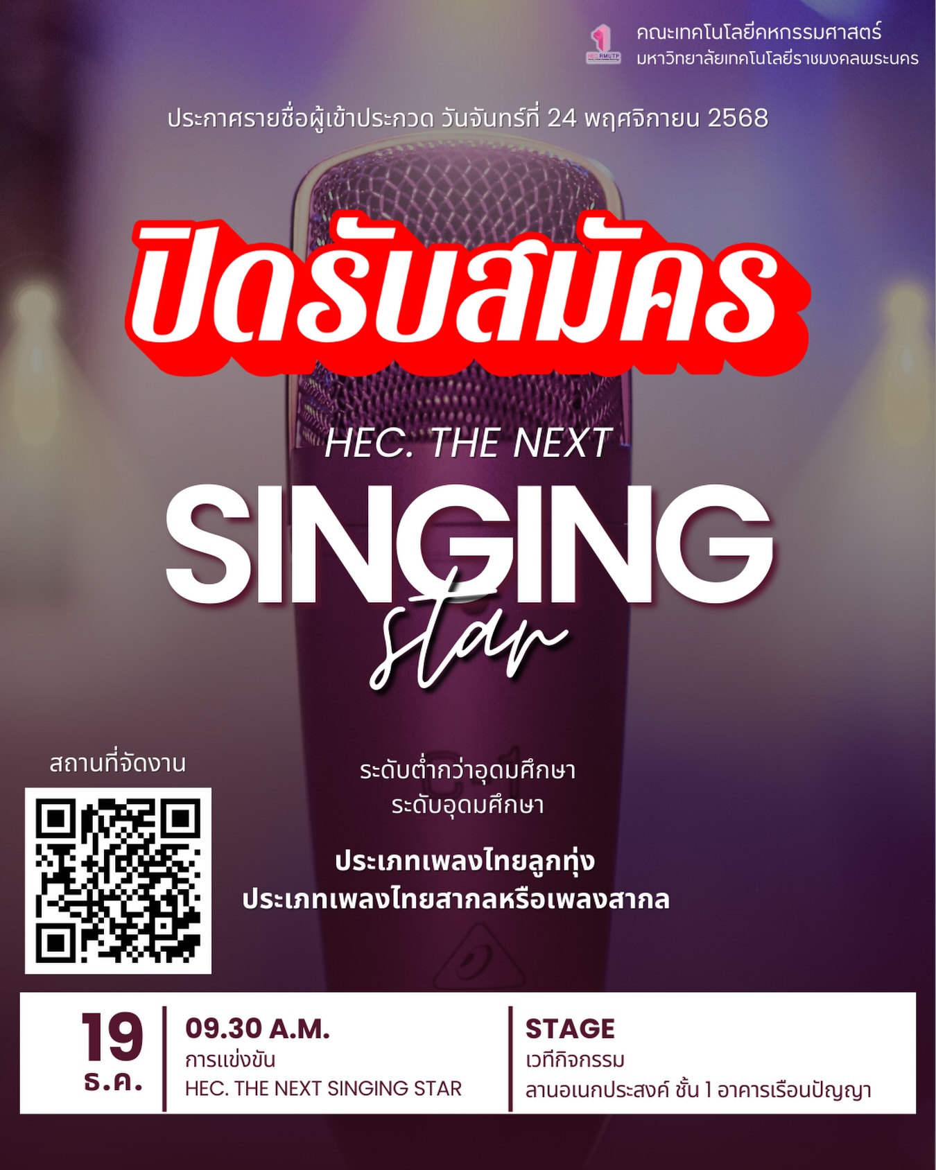 ประกาศรายชื่อผู้เข้าประกวด วันจันทร์ที่ 24 พฤศจิกายน 2568