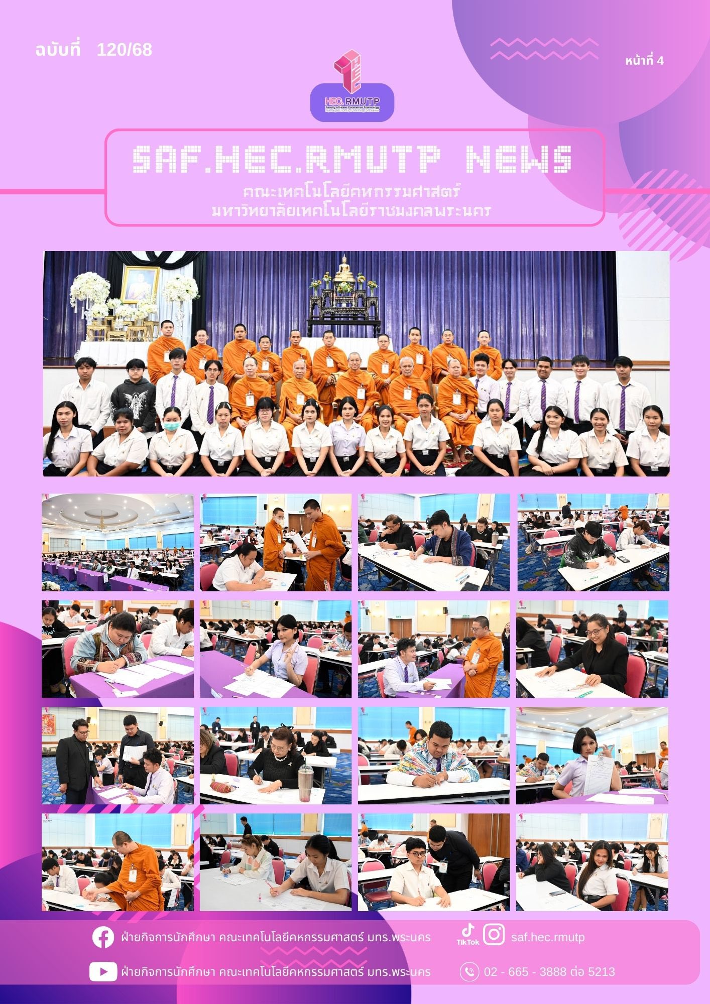 คณะเทคโนโลยีคหกรรมศาสตร์ มหาวิทยาลัยเทคโนโลยีราชมงคลพระนคร จัดการสอบธรรมสนามหลวง ระดับธรรมศึกษาชั้นตรี (อุดมศึกษา) ประจำปีการศึกษา ๒๕๖๘ ภายใต้ “โครงการเรียนสอบธรรมศึกษา ปีการศึกษา ๒๕๖๘” โดยมีวัตถุประสงค์เพื่อส่งเสริมให้นักศึกษาและบุคลากรได้ศึกษาพระพุทธศาสนาอย่างถูกต้องตามหลักธรรมคำสอนของพระสัมมาสัมพุทธเจ้า พร้อมปลูกฝังคุณธรรม จริยธรรม และค่านิยมอันดีงาม ควบคู่กับการพัฒนาความรู้ทางวิชาการ อันจะนำไปสู่การเป็นพลเมืองที่มีคุณธรรมและมีส่วนร่วมในการพัฒนาสังคมอย่างยั่งยืน