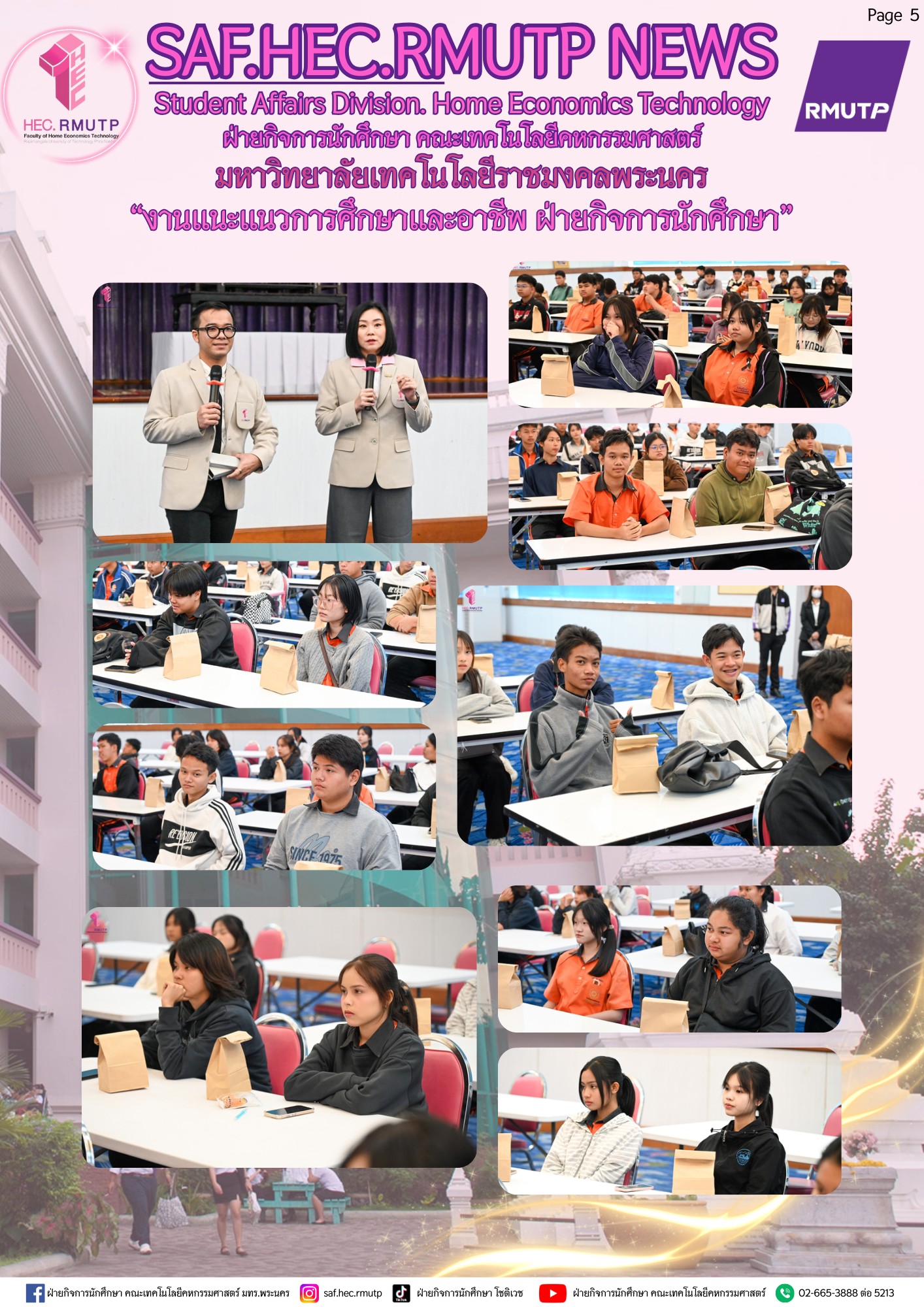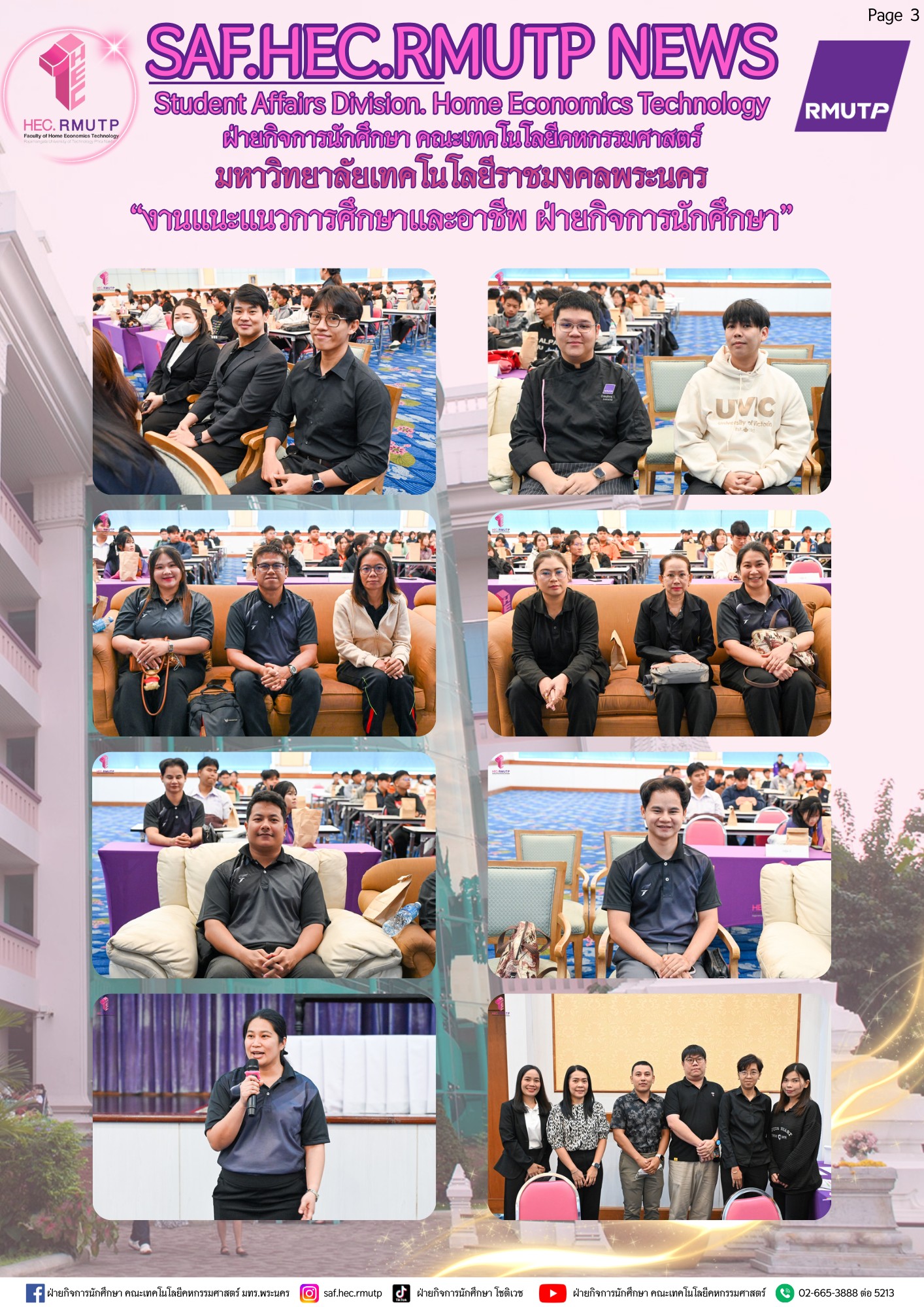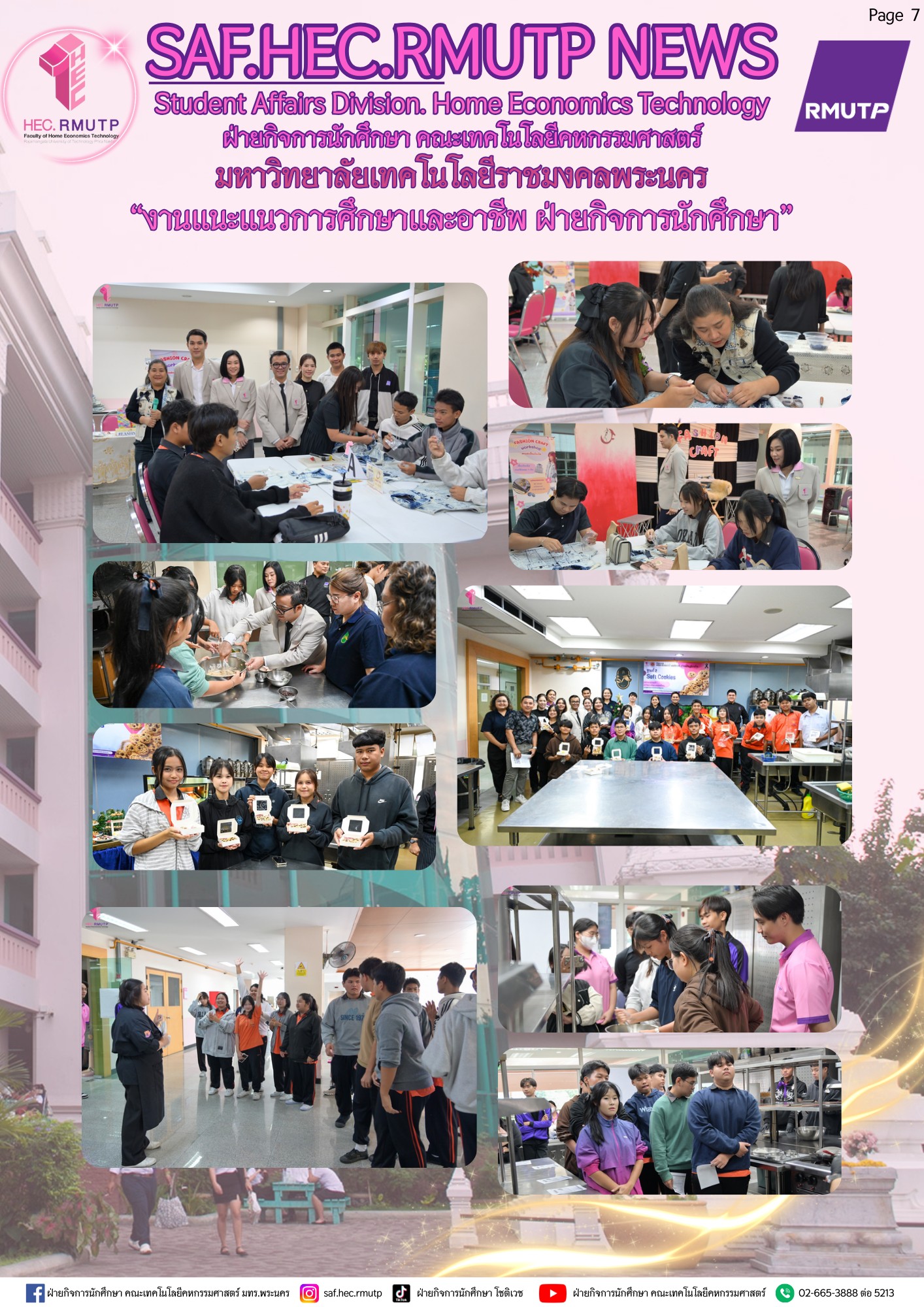 งานแนะแนวการศึกษาและอาชีพ ฝ่ายกิจการนักศึกษา คณะเทคโนโลยีคหกรรมศาสตร์ มหาวิทยาลัยเทคโนโลยีราชมงคลพระนคร