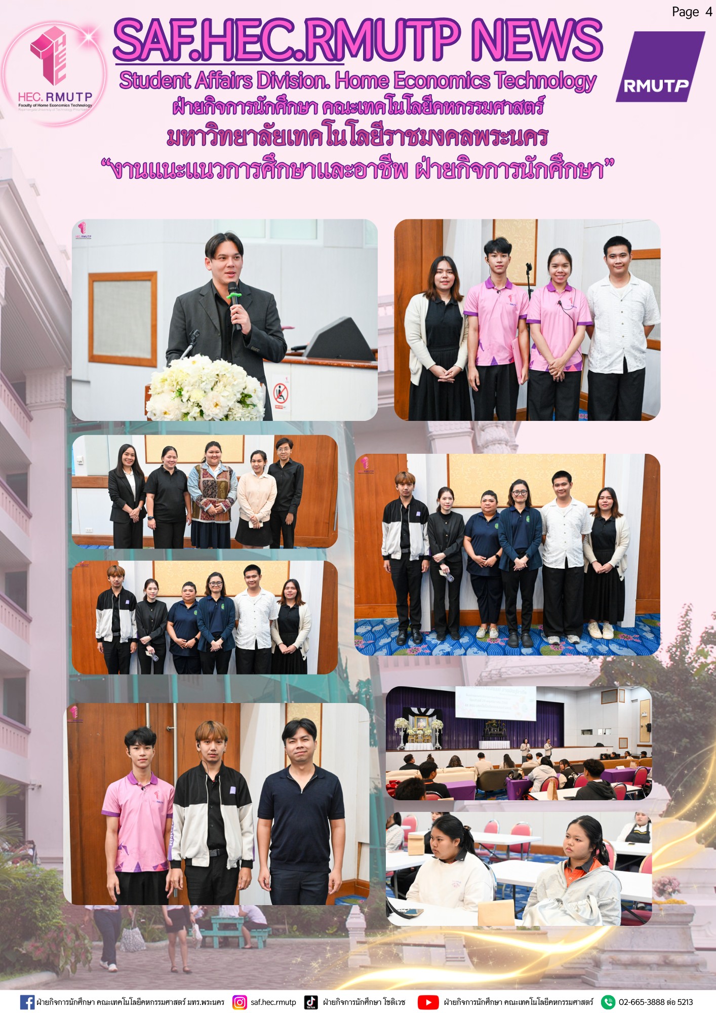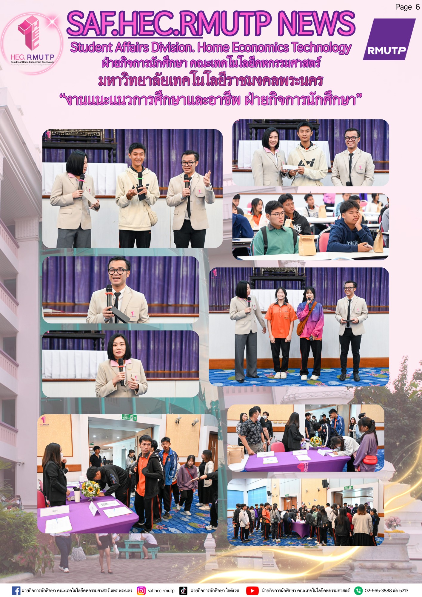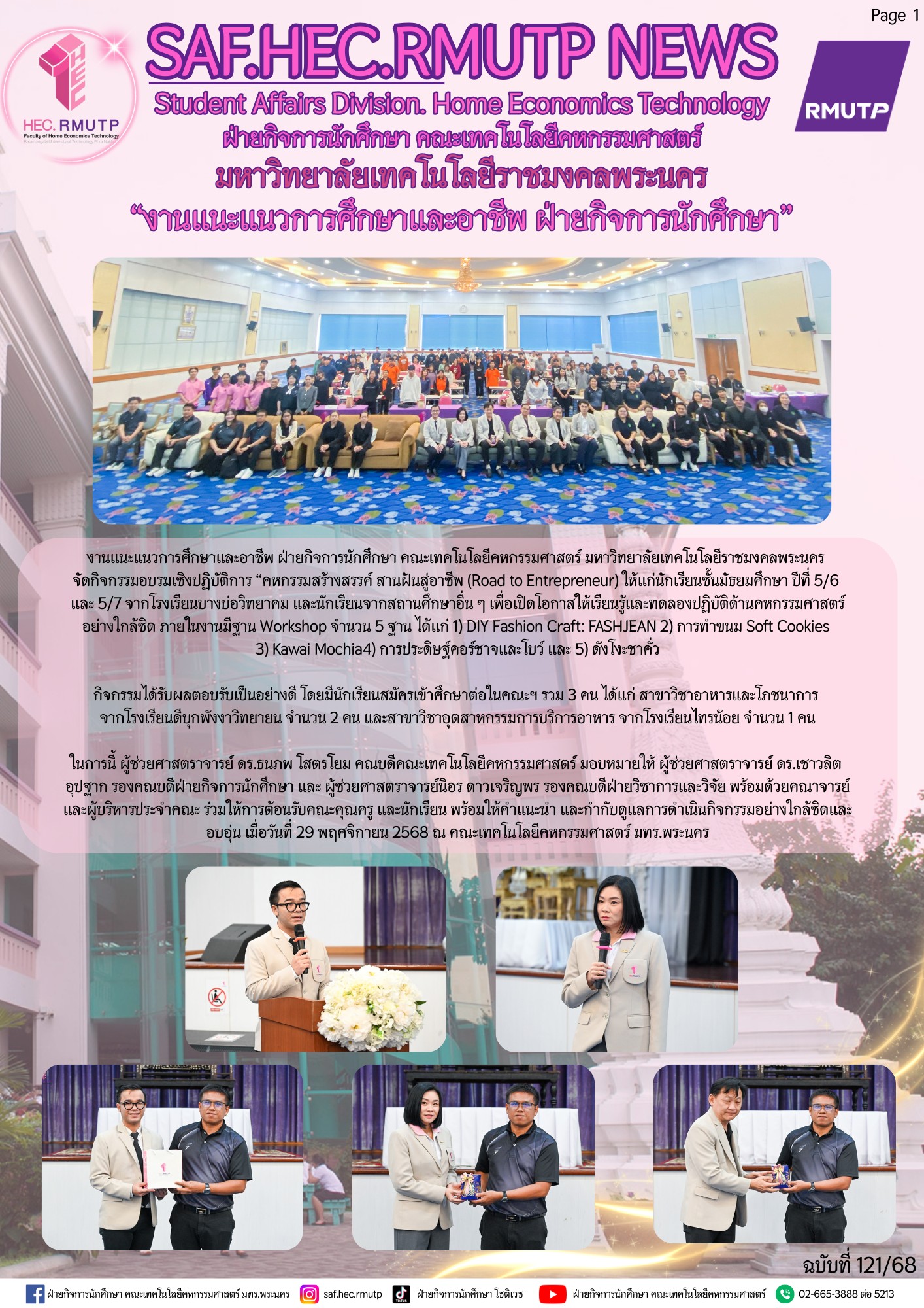 งานแนะแนวการศึกษาและอาชีพ ฝ่ายกิจการนักศึกษา คณะเทคโนโลยีคหกรรมศาสตร์ มหาวิทยาลัยเทคโนโลยีราชมงคลพระนคร