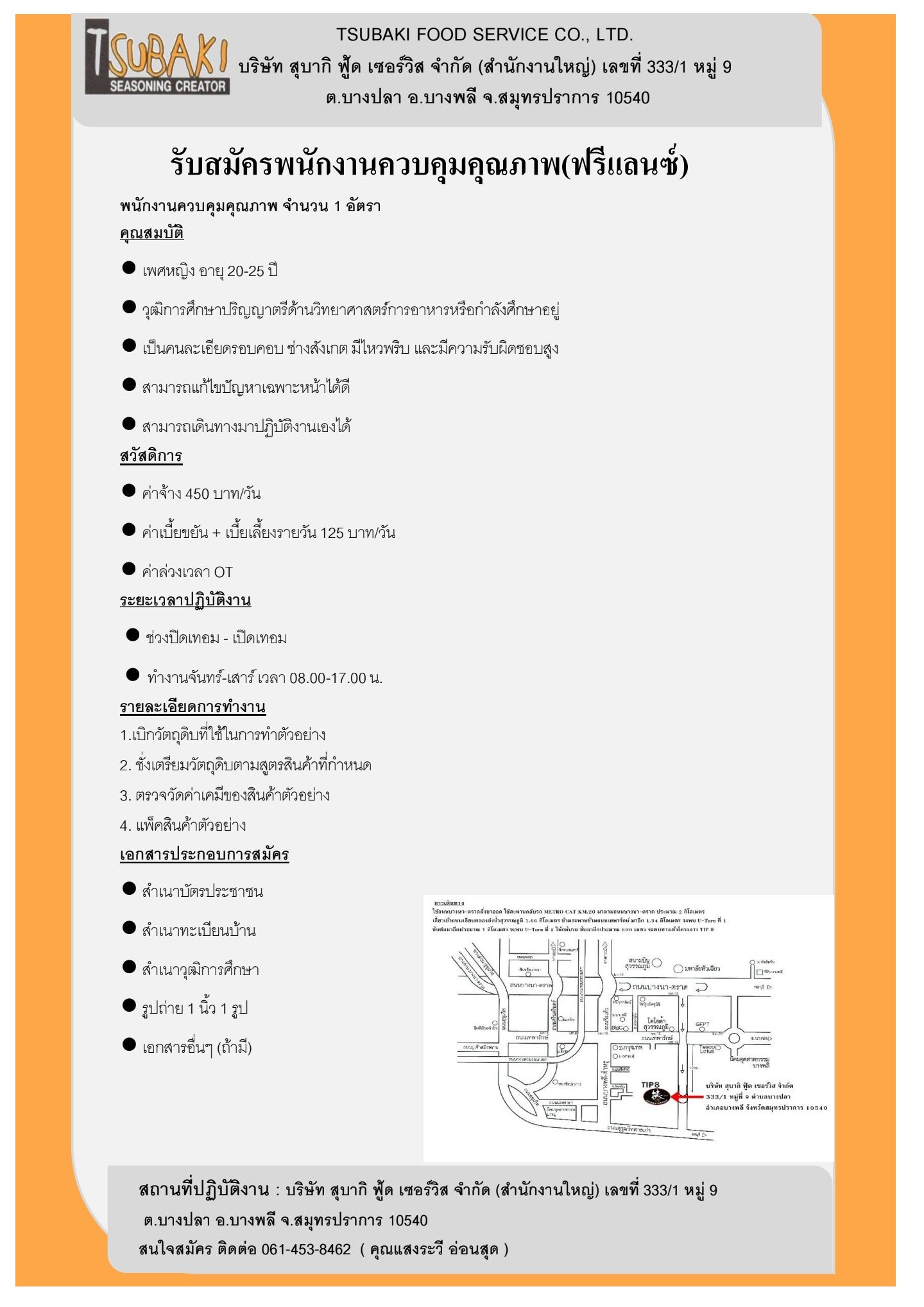 เปิดรับสมัคร พนักงานควบคุมคุณภาพ (ฟรีแลนซ์) จำนวน 1 อัตรา