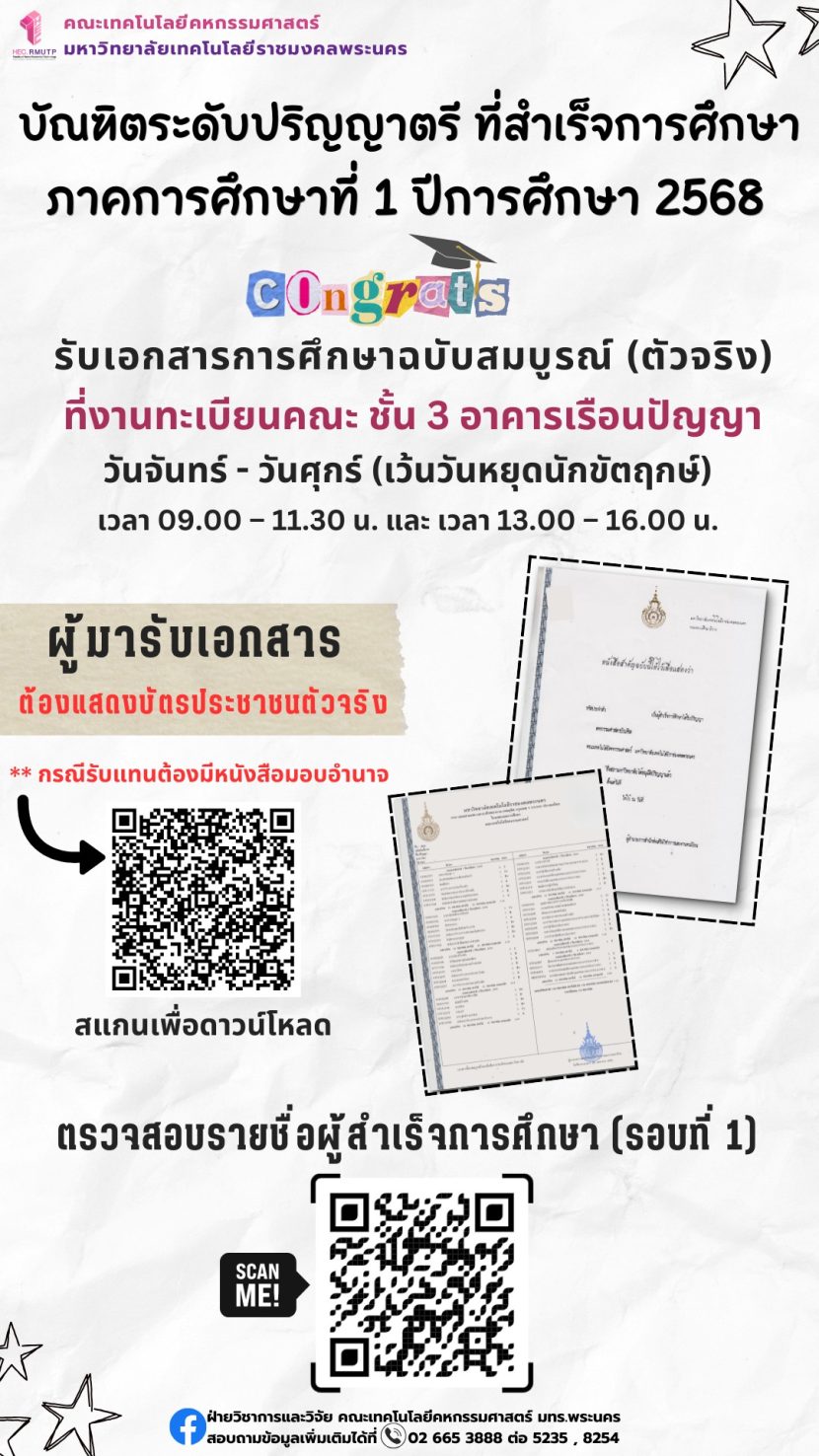 ประกาศข่าวดี จากที่คณะเทคโนโลยีคหกรรมศาสตร์ มหาวิทยาลัย […]