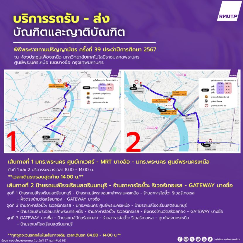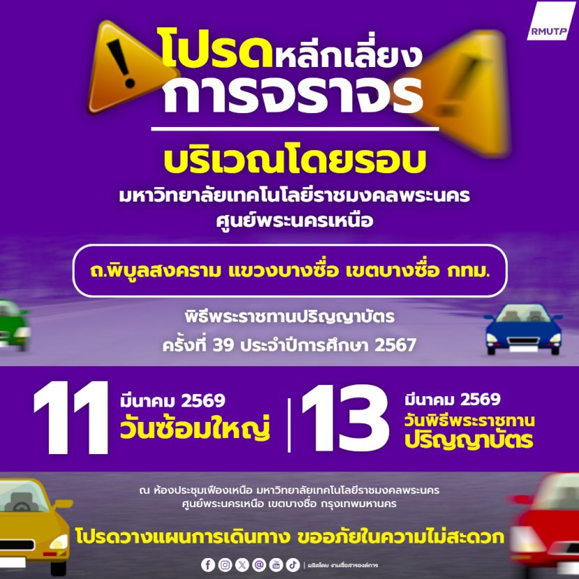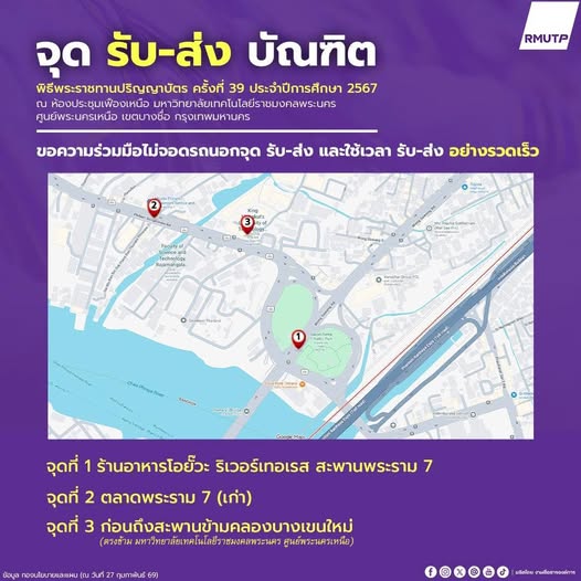 แนะนำ 8 จุดจอดรถใกล้เคียง มหาวิทยาลัยเทคโนโลยีราชมงคลพระนคร (ศูนย์พระนครเหนือ) พิธีพระราชทานปริญญาบัตร ครั้งที่ 39 ประจำปีการศึกษา 2567