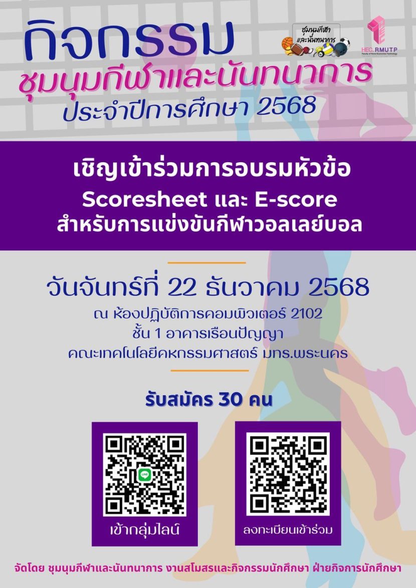 กิจกรรมชุมนุมกีฬาและนันทนาการ อบรม Scoresheet และ E-score
