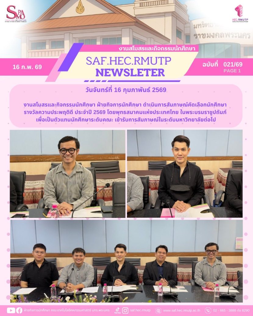 วันที่ 16 กุมภาพันธ์ 2568 งานสโมสรและกิจกรรมนักศึกษา ฝ่ […]