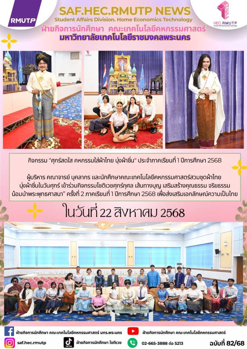 กิจกรรม “ศุกร์สดใส คหกรรมใส่ผ้าไทย นุ่งผ้าซิ่น […]