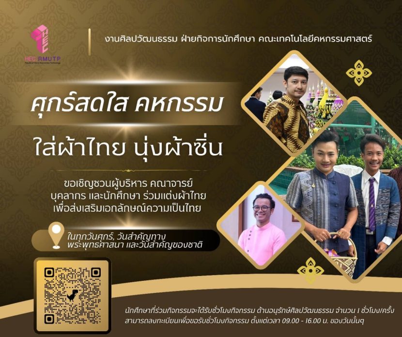 งานศิลปวัฒนธรรม ฝ่ายกิจการนักศึกษา คณะเทคโนโลยีคหกรรมศา […]