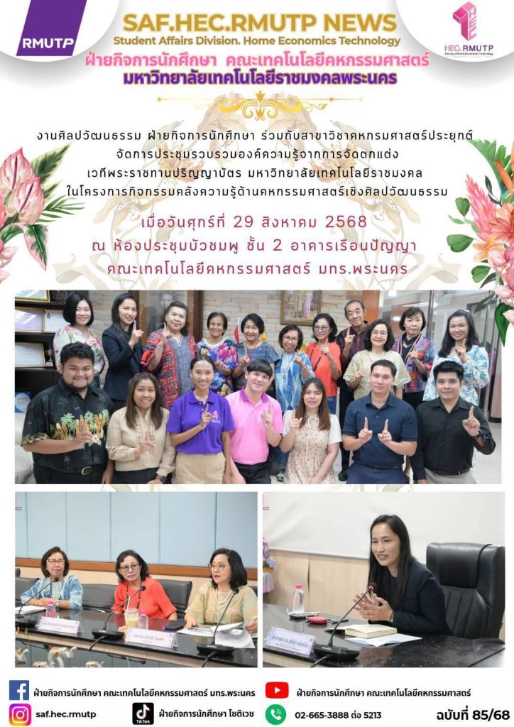 เมื่อวันศุกร์ที่ 29 สิงหาคม 2568 ณ ห้องประชุมบัวชมพู ชั้น 2 อาคารเรือนปัญญา คณะเทคโนโลยีคหกรรมศาสตร์ มทร.พระคร