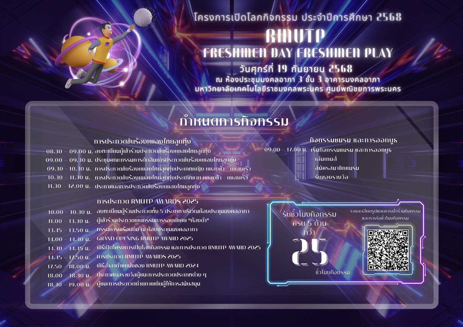 #รับทรานสคริปต์กิจกรรม ทั้ง 5 ด้าน กว่า 25 ชั่วโมงกิจกรรม สามารถ SCAN QR CODE หรือกดลิงค์ ตรวจสอบรายละเอียดการเข้าร่วมกิจกรรมเพื่อรับทรานสคริปต์กิจกรรมได้ที่ https://std.rmutp.ac.th/wp-content/uploads/2025/09/ตารางแจกทรานสคริป_โครงการเปิดโลกกิจกรรม-2025-scaled.jpg