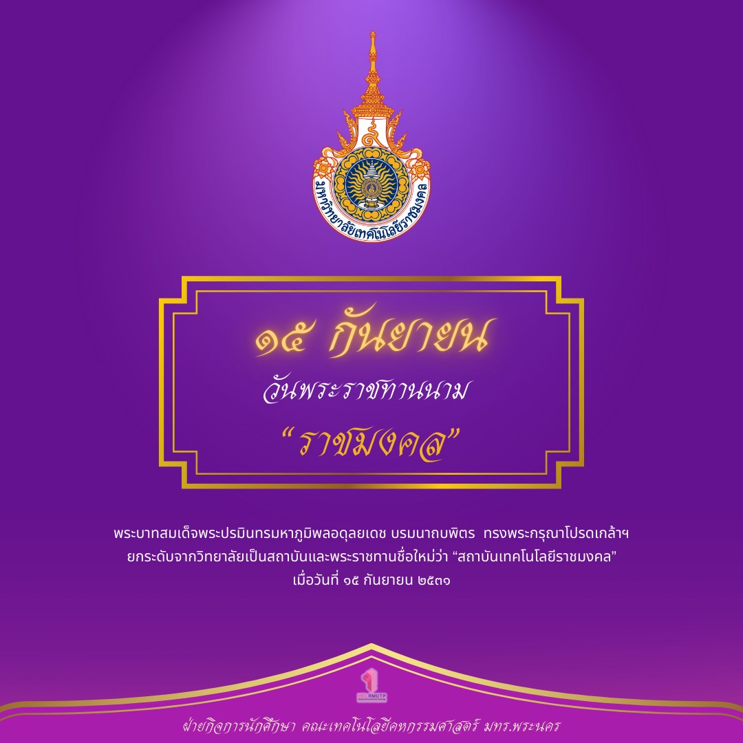 งานแนะแนวการศึกษาและอาชีพประชาสัมพันธ์ 15 กันยายน 2568 วันพระราชทานนาม “ราชมงคล” Posted กันยายน 23, 2025 suphasit 15 กันยายน 2568 วันพระราชทานนาม “ราชมงคล” พระบาทสมเด็จพระปรมินทรมหาภูมิพลอดุลยเดช บรมนาถบพิตร ทรงพระกรุณาโปรดเกล้าฯ ยกระดับจากวิทยาลัยเป็นสถาบันและพระราชทานชื่อใหม่ว่า “สถาบันเทคโนโลยีราชมงคล” เมื่อวันที่ ๑๕ กันยายน ๒๕๓๑