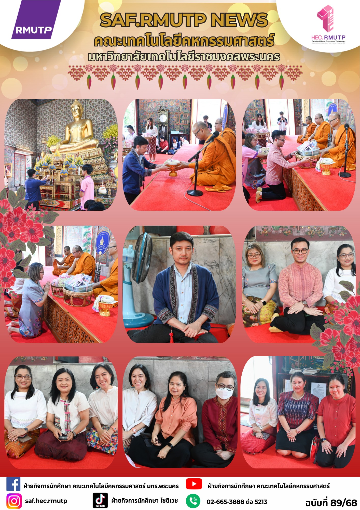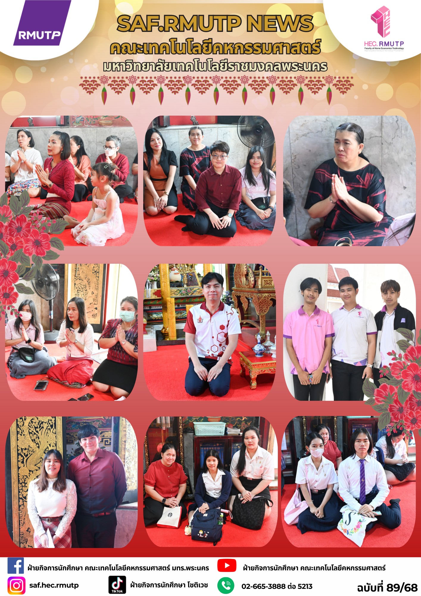 โดยมี ผู้ช่วยศาสตราจารย์ ดร.ธนภพ โสตรโยม คณบดีคณะเทคโนโลยีคหกรรมศาสตร์ เป็นประธานจุดธูปเทียน พร้อมด้วย ผู้ช่วยศาสตราจารย์ ดร.เชาวลิต อุปฐาก รองคณบดีฝ่ายกิจการนักศึกษา ผู้บริหาร คณาจารย์ บุคลากร และนักศึกษาคณะเทคโนโลยีคหกรรมศาสตร์ เข้าร่วมกิจกรรมดังกล่าว ในวันที่ 18 กันยายน 2568 ณ วัดสามพระยา วรวิหาร
