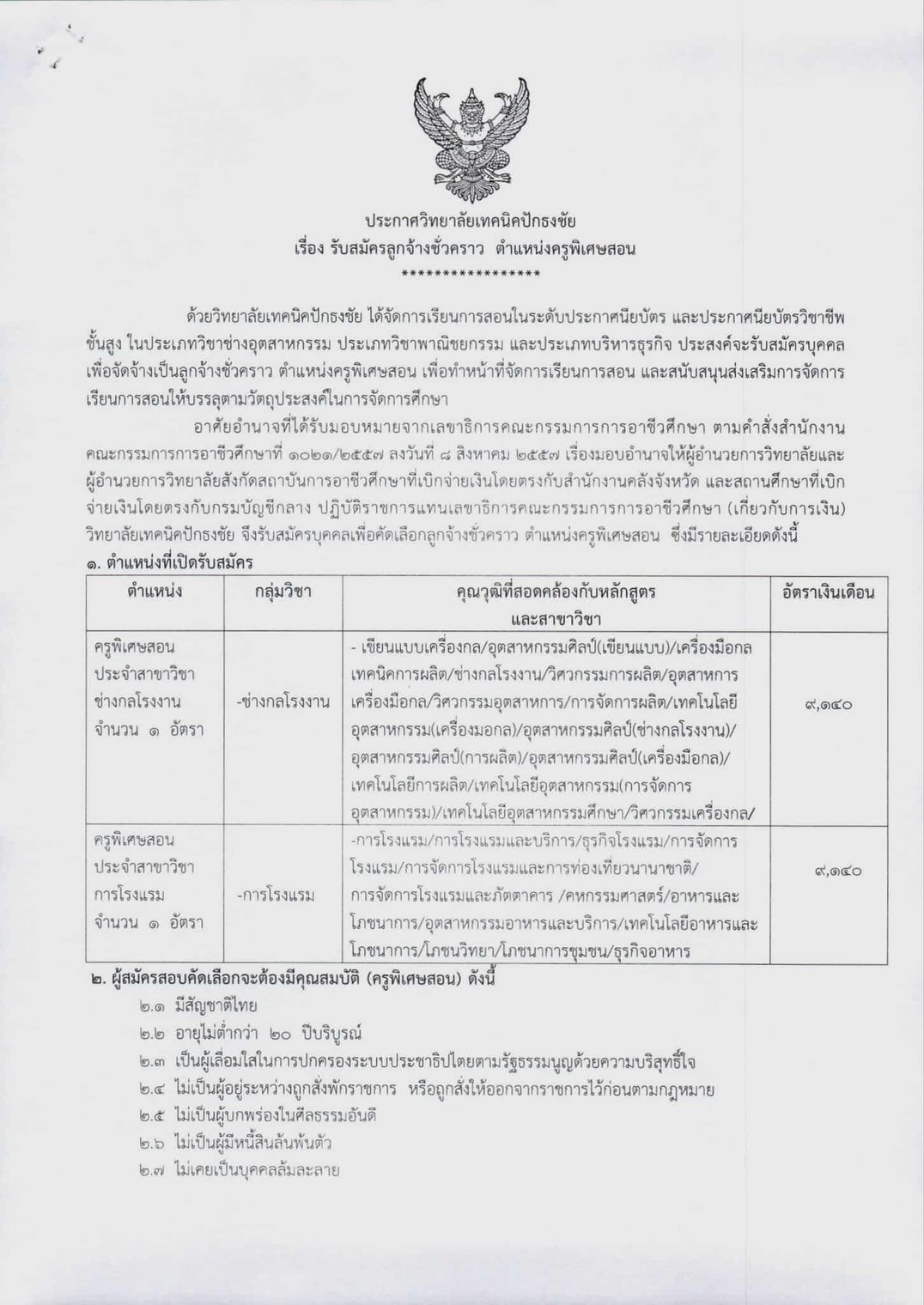 วิทยาลัยเทคนิคปักธงชัย เปิดรับสมัครบุคคลเพื่อสอบคัดเลือกเป็น ครูพิเศษสอน ดังนี้