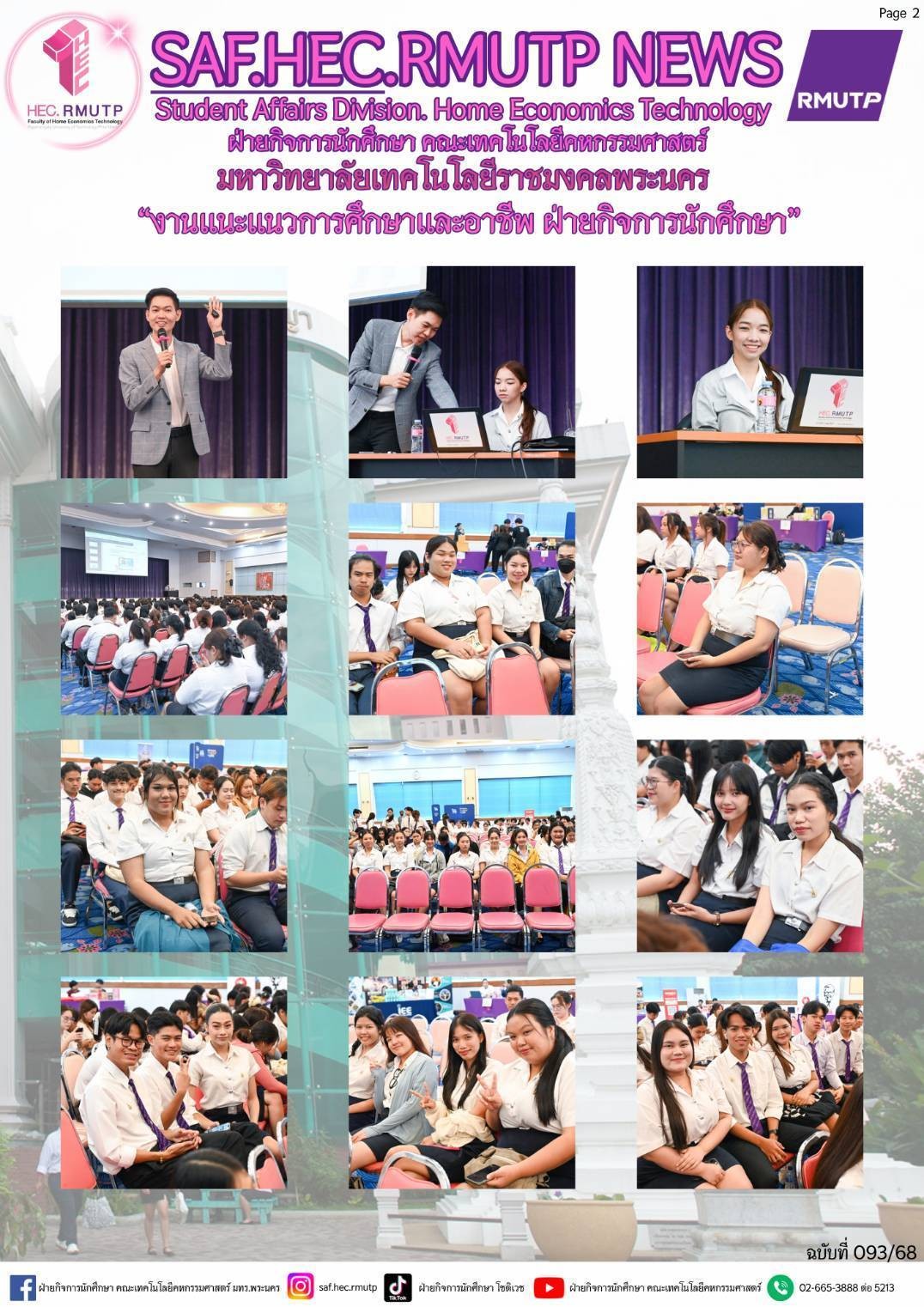 งานแนะแนวการศึกษา ฝ่ายกิจการนักศึกษาจัดโครงการปัจฉิมนิเทศนักศึกษา ประจำปีการศึกษา 2568 ให้แก่นักศึกษาที่กำลังสำเร็จการศึกษาปีที่ 4 และนักศึกษาชั้นปีที่ 3 (เทียบโอน) เพื่อให้นักศึกษาได้รับทราบข้อมูลเกี่ยวกับการประกอบอาชีพในอนาคต และความต้องการของตลาดแรงงาน กิจกรรมประกอบด้วย การฟังบรรยาย เรื่อง “การเขียน RESUME” พร้อมเทคนิคการสัมภาษณ์อย่างไรให้ได้งาน โดยคุณคงรัฐ อิสรพร ผู้เชี่ยวชาญด้านคนและทีมงาน และเรื่อง“การแนะนำและการประชาสัมพันธ์ E-SERVICE และการคืนเงินกองทุนกู้เพื่อการศึกษา (กยศ.)” โดยคุณขนิษฐา สุริยะ นักวิชาการศึกษาชำนาญการ หัวหน้างานสวัสดิการและการบริการนักศึกษา และอังคณา วงรถ นักแนะแนวการศึกษาและอาชีพปฏิบัติการ กองพัฒนานักศึกษา มทร.พระนคร