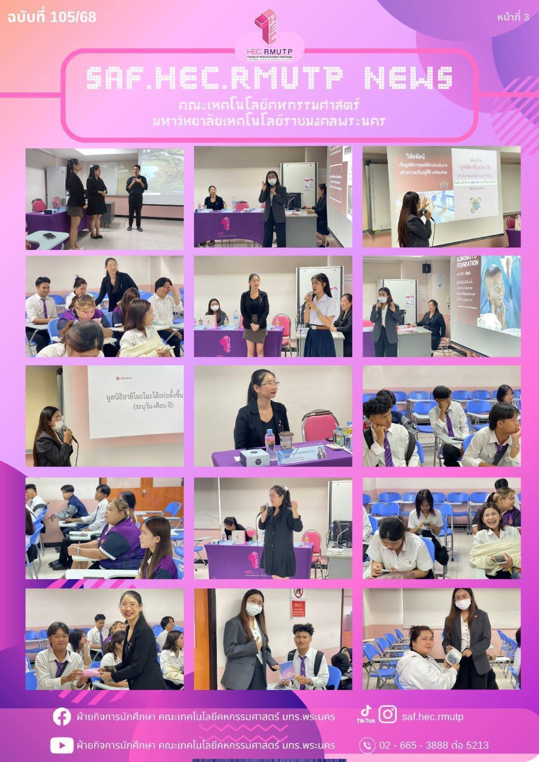 ในวันอังคารที่ 4 พฤศจิกายน 2568 เวลา 15.30 – 16.30 น. ณ ห้อง 2201 ชั้น 2 อาคารเรือนปัญญา คณะเทคโนโลยีคหกรรมศาสตร์ โดยมีนางสาวสุรดา อัศวชุณห์ หัวหน้างานสวัสดิการและการบริการนักศึกษา เป็นผู้ประสานงานกิจกรรมครั้งนี้