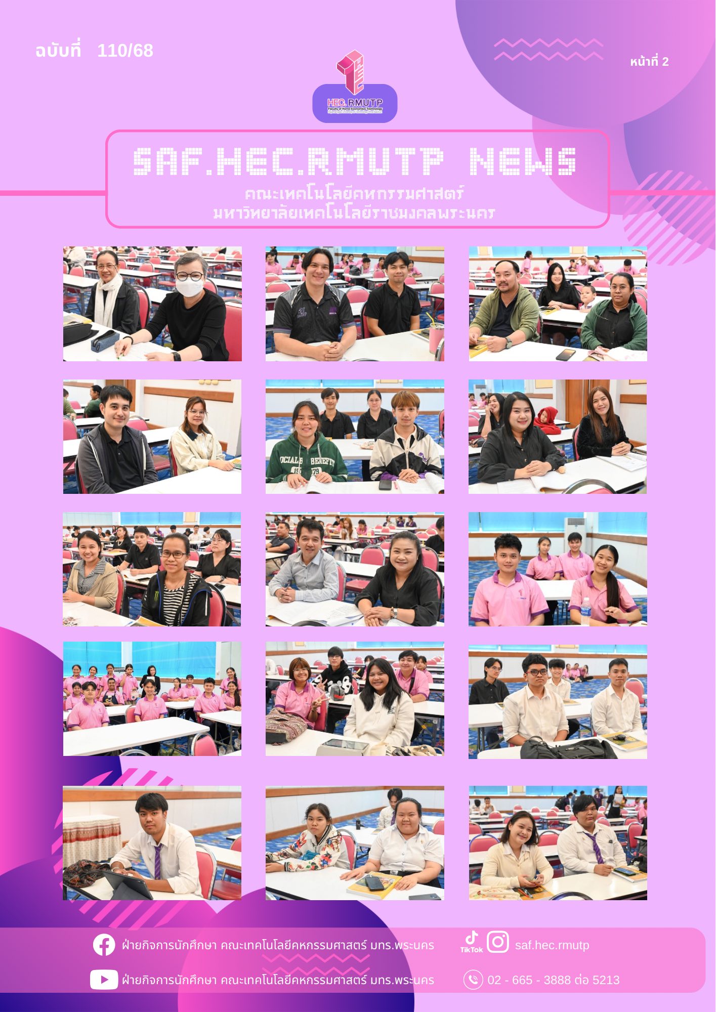 งานพัฒนาวินัย คุณธรรม และจริยธรรม ฝ่ายกิจการนักศึกษา คณะเทคโนโลยีคหกรรมศาสตร์ ดำเนินการจัดการเรียนการสอนธรรมศึกษา ปีการศึกษา 2568 (ครั้งที่ 2) โดยมีวัตถุประสงค์เพื่อส่งเสริมให้นักศึกษา บุคลากร และผู้สนใจทั่วไป ได้มีโอกาสศึกษาหลักธรรมทางพระพุทธศาสนา และนำหลักธรรมมาประยุกต์ใช้ในการดำเนินชีวิตประจำวัน