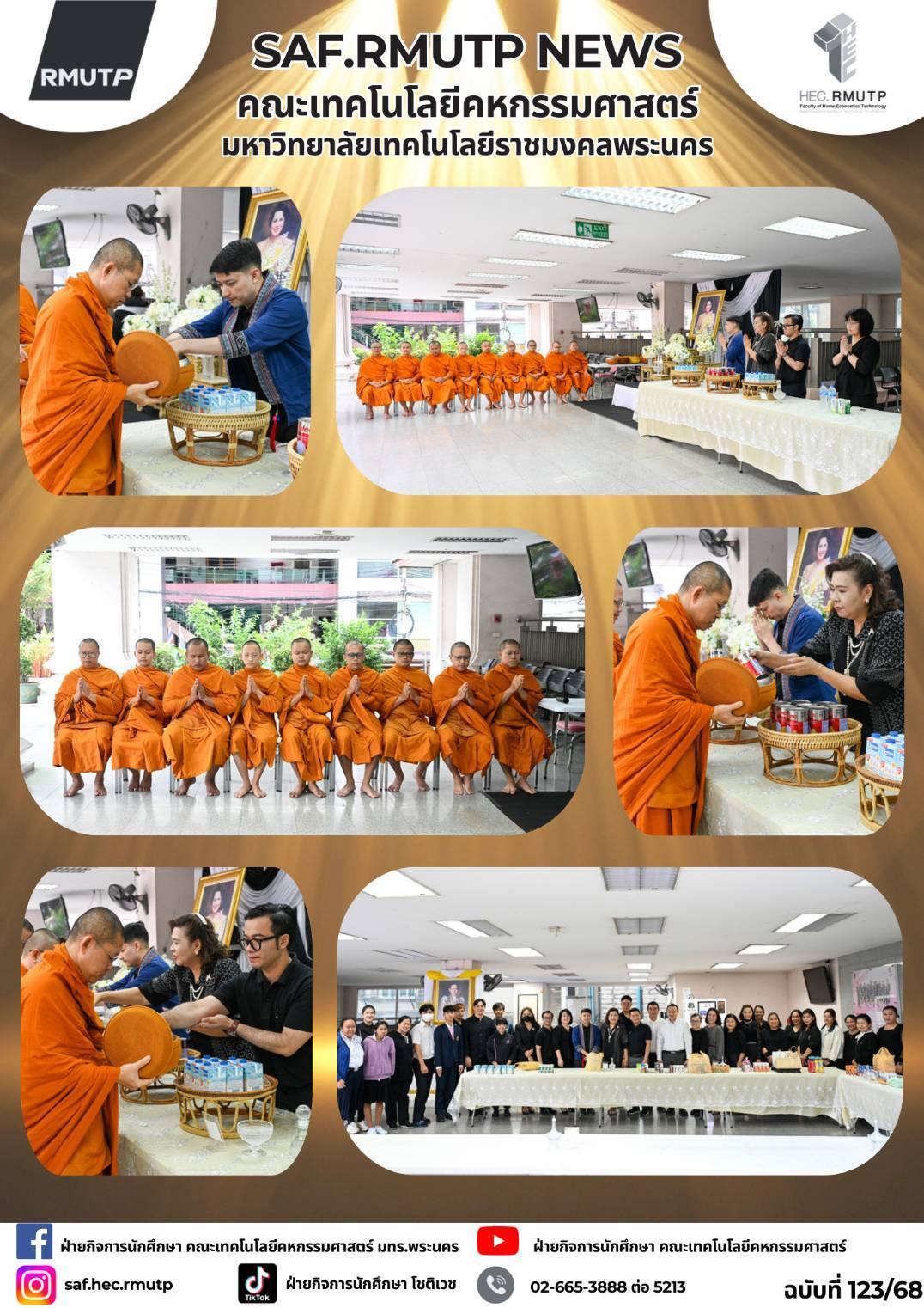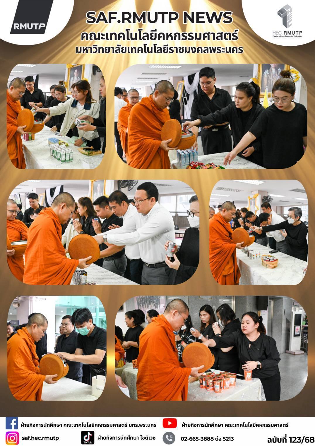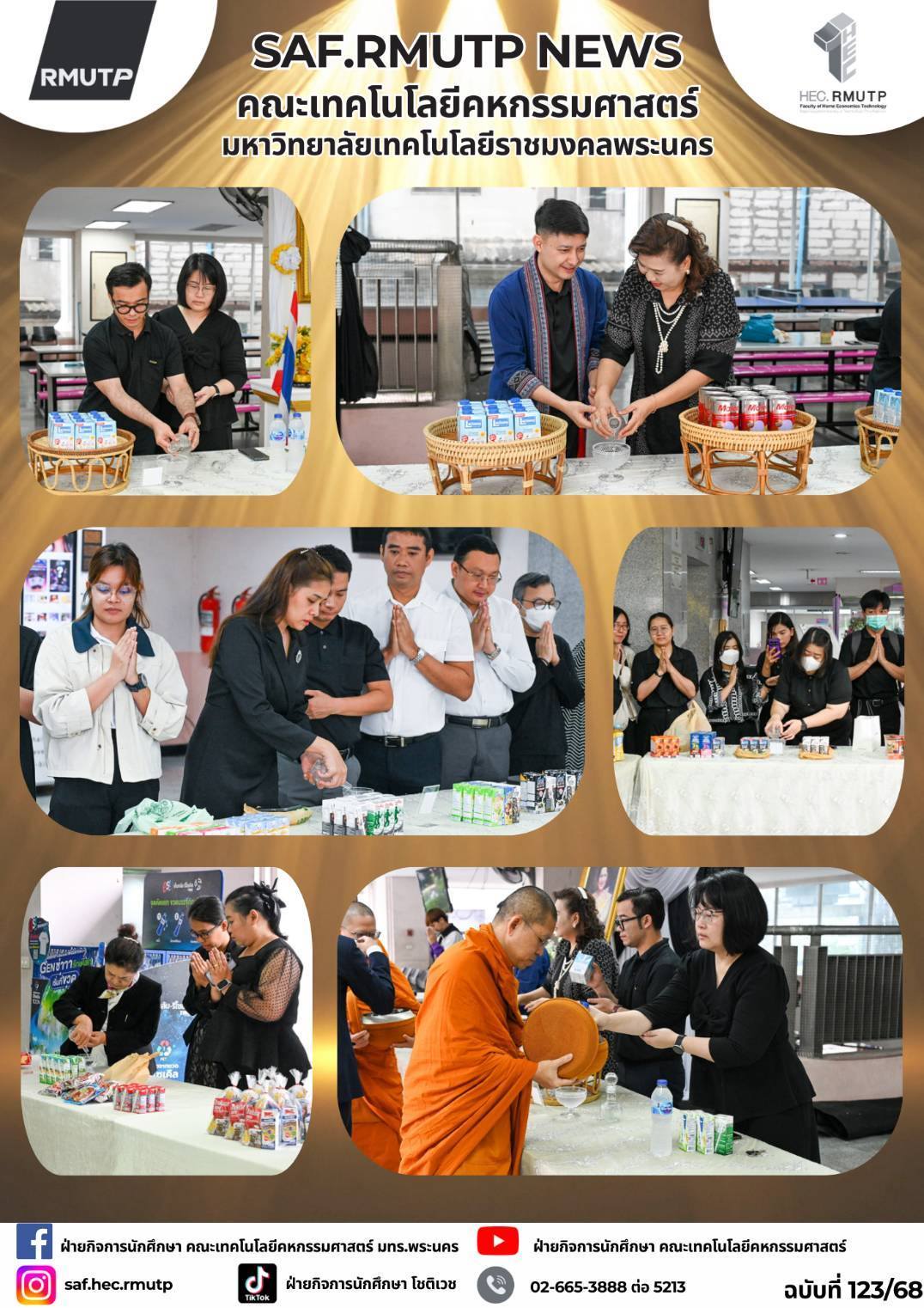 งานศิลปวัฒนธรรม ฝ่ายกิจการนักศึกษา คณะเทคโนโลยีคหกรรมศาสตร์ ดำเนินการจัดกิจกรรมโชติเวชศุกร์กุศล เส้นทางบุญ เสริมสร้างคุณธรรม จริยธรรม น้อมนำพระพุทธศาสนา” ครั้งที่ 2 ภาคเรียนที่ 2 ปีการศึกษา 2568 เพื่อเป็นพระราชกุศล เนื่องในโอกาสวันคล้ายวันพระบรมราชสมภพ พระบาทสมเด็จพระบรมชนกาธิเบศร มหาภูมิพลอดุลยเดชมหาราช บรมนาถบพิตร วันชาติไทย วันพ่อแห่งชาติ 5 ธันวาคม และและพิธีทรงบำเพ็ญพระราชกุศลปัญญาสมวารถวายพระบรมศพ