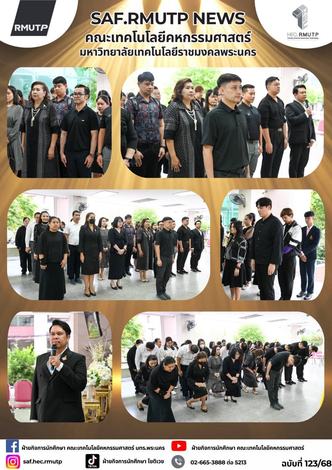 มหาภูมิพลอดุลยเดชมหาราช บรมนาถบพิตร พร้อมด้วย อาจารย์ปิยะธิดา สีหะวัฒนกุล ที่ปรึกษาคณบดี, ผู้ช่วยศาสตราจารย์ ดร.เชาวลิต อุปฐาก รองคณบดีฝ่ายกิจการนักศึกษา ผู้บริหาร คณาจารย์ บุคลากร และนักศึกษาคณะเทคโนโลยีคหกรรมศาสตร์ เข้าร่วมกิจกรรมดังกล่าว ในวันศุกร์ที่ 12 ธันวาคม 2568 ณ ลานอเนกประสงค์ ชั้น 1 อาคารเรือนปัญญา คณะเทคโนโลยีคหกรรมศาสตร์ มหาวิทยาลัยเทคโนโลยีคหกรรมศาสตร์