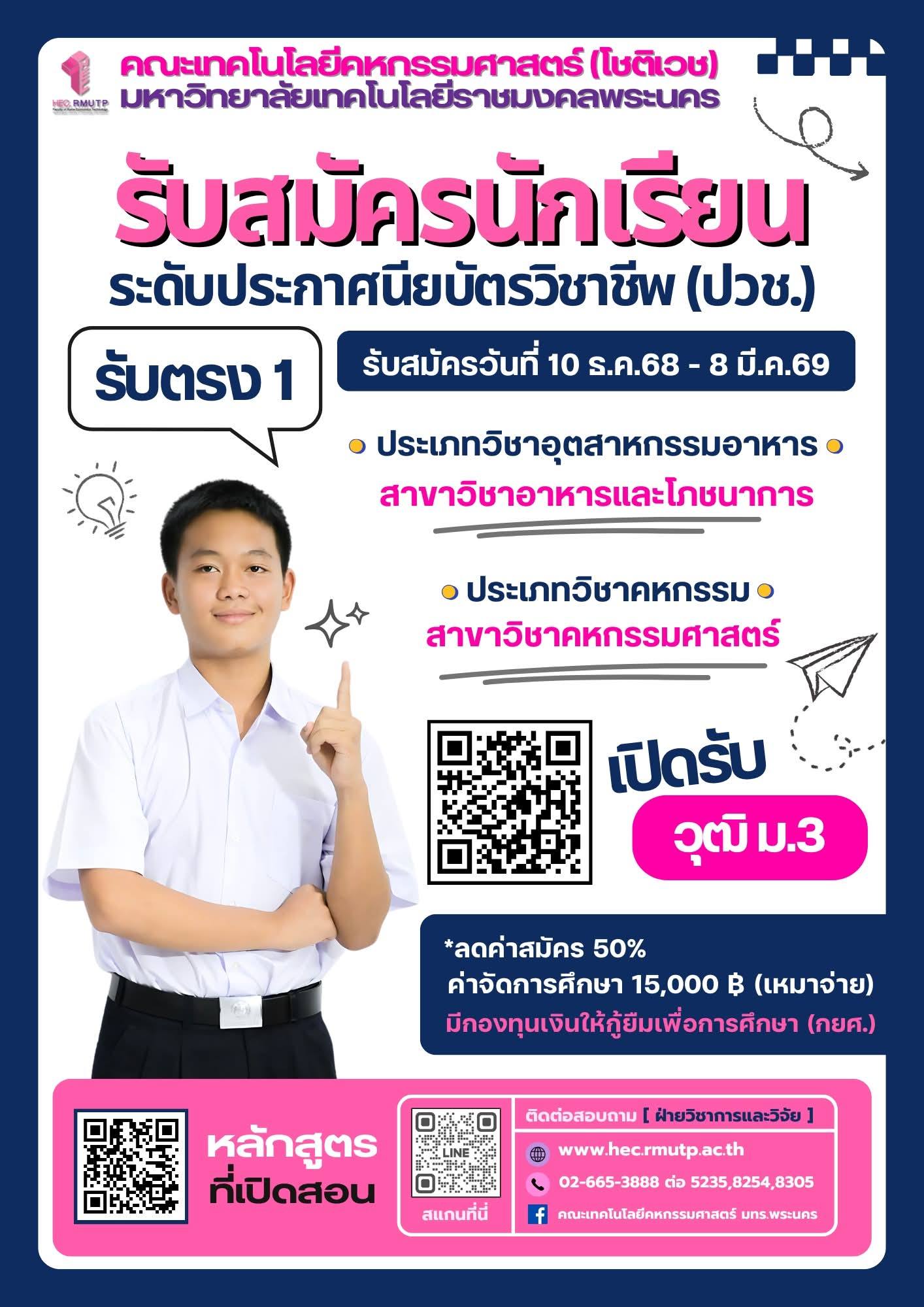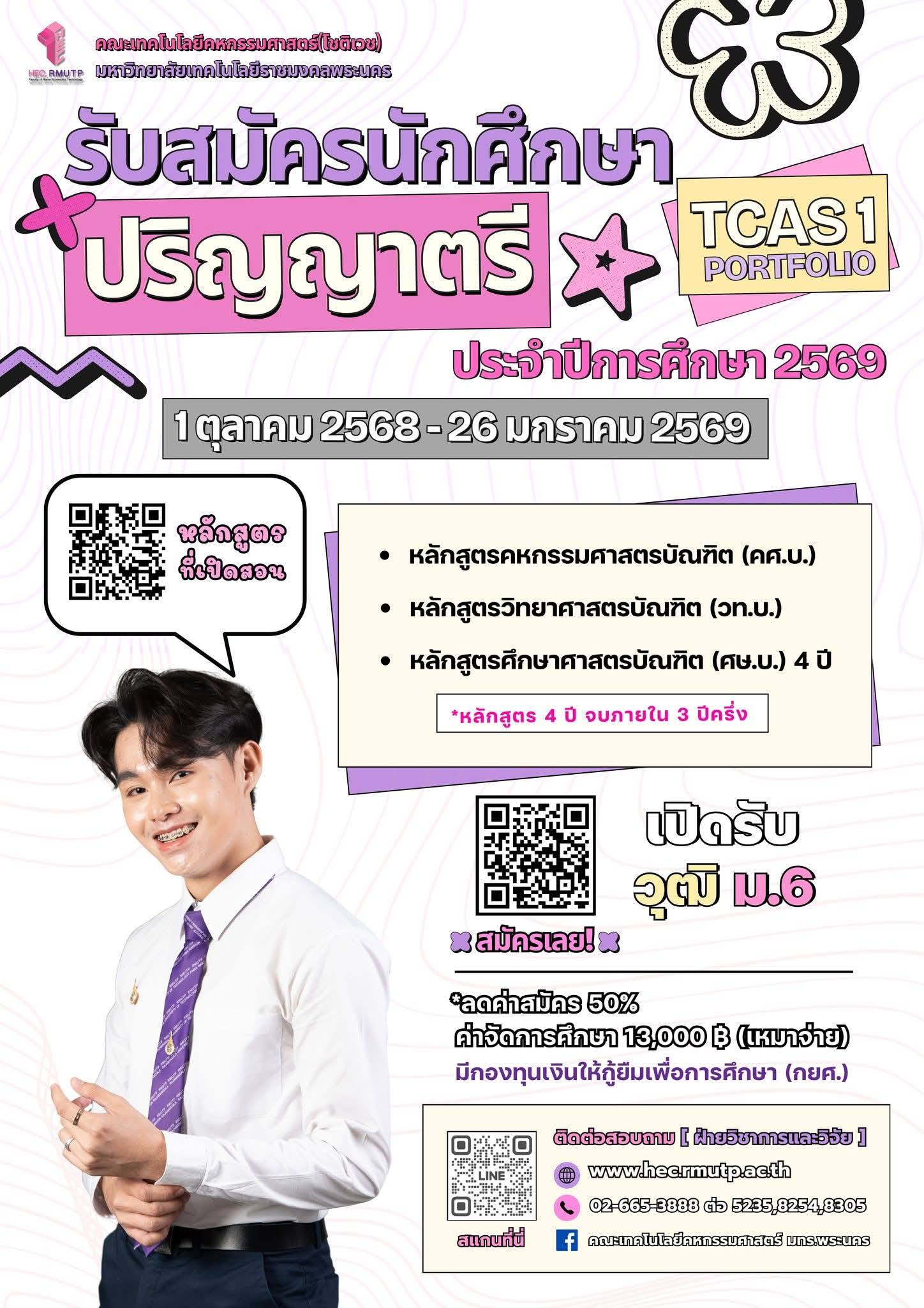 ดูข้อมูลเพิ่มเติมได้ที่: https://admission.rmutp.ac.th/upload/TCAS1-69.pdf