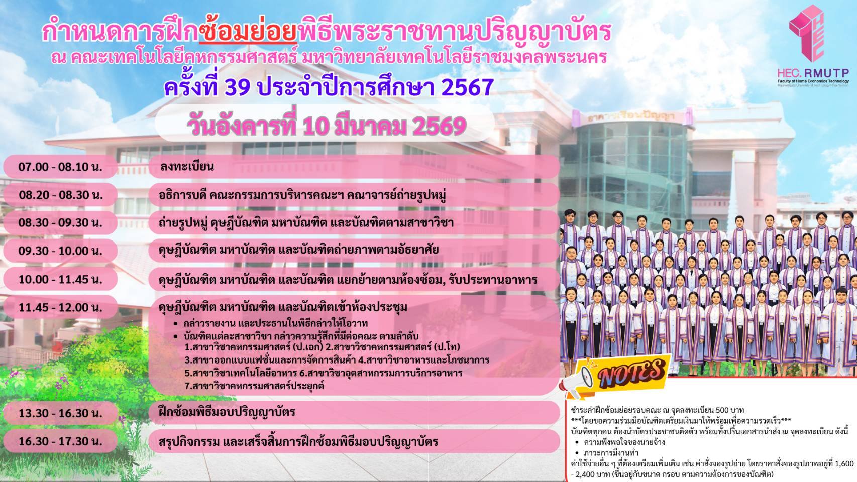 ลงทะเบียนเวลา 07.00 – 08.10 น.