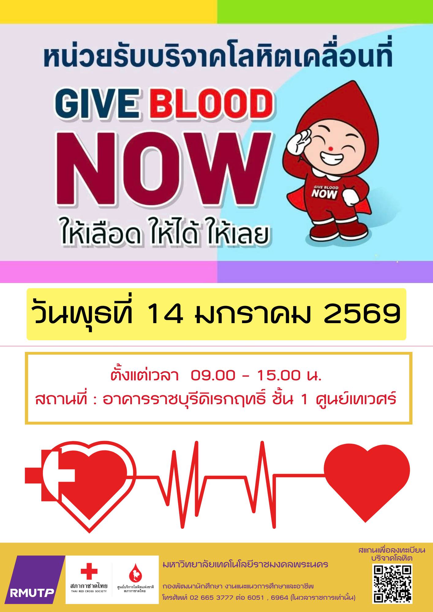 มหาวิทยาลัยเทคโนโลยีราชมงคลพระนคร ขอเชิญชวนผู้บริหาร คณาจารย์ บุคลากร นักศึกษา ศิษย์เก่าและบุคคลทั่วไป ร่วมบริจาคโลหิต