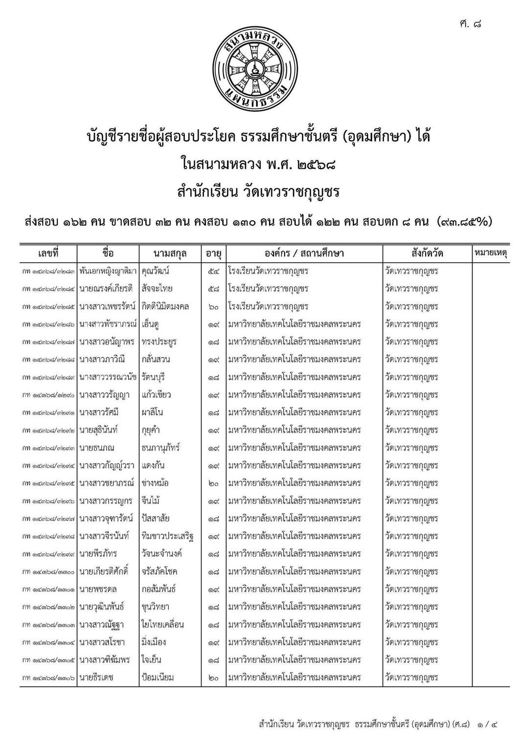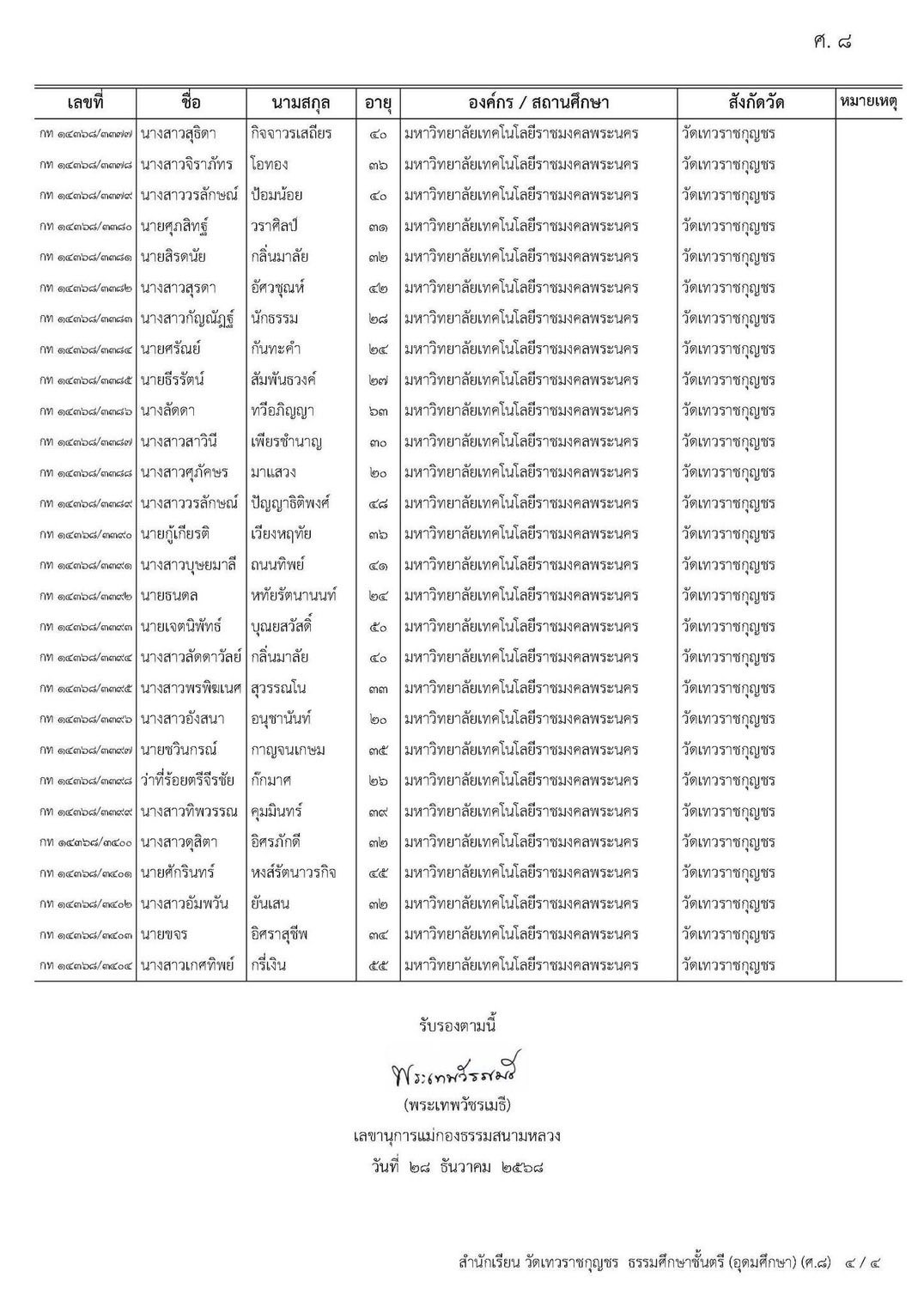 จากที่คณะเทคโนโลยีคหกรรมศาสตร์ มหาวิทยาลัยเทคโนโลยีราชมงคลพระนคร ร่วมกับ วัดเทวราชกุญชรวรวิหาร ในจัดการสอบธรรมสนามหลวง ระดับธรรมศึกษาชั้นตรี (อุดมศึกษา) ประจำปีการศึกษา ๒๕๖๘ ภายใต้ “โครงการเรียนสอบธรรมศึกษา ปีการศึกษา ๒๕๖๘”