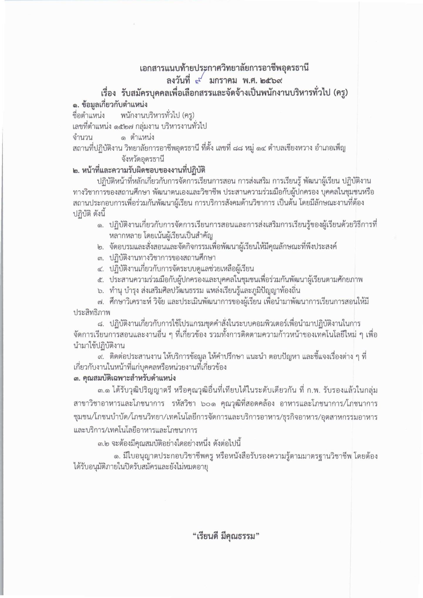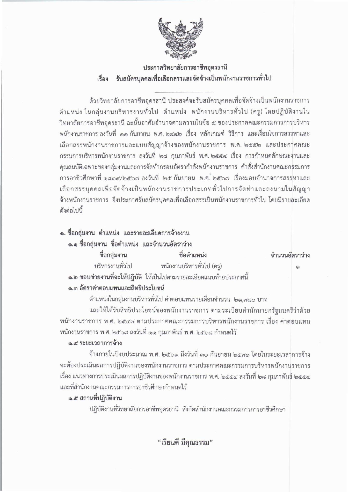 วิทยาลัยการอาชีพอุดรธานี เปิดรับสมัครบุคคลเพื่อเลือกสรรและจัดจ้างเป็นพนักงานราชการทั่วไป
