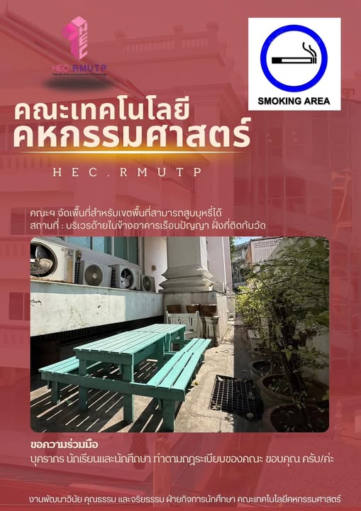 คณะเทคโนโลยีคหกรรมศาสตร์ จัดพื้นที่สำหรับสูบบุหรี่เฉพาะจุด