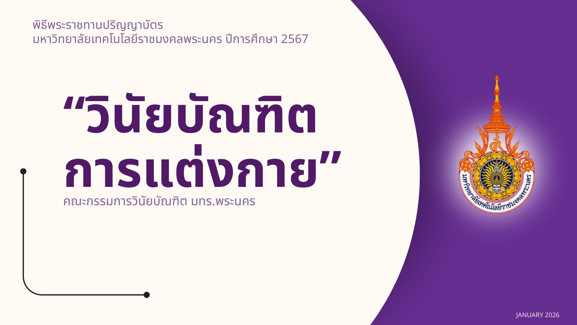 กิจกรรม / โครงการงานพัฒนาวินัย คุณธรรม และจริยธรรมงานแนะแนวการศึกษาและอาชีพประชาสัมพันธ์ การแต่งกายบัณฑิต มหาบัณฑิต และดุษฎีบัณฑิต ในพิธีพระราชทานปริญญาบัตร ครั้งที่ 39 ปีการศึกษา 2567 Posted กุมภาพันธ์ 3, 2026กุมภาพันธ์ 3, 2026 suphasit