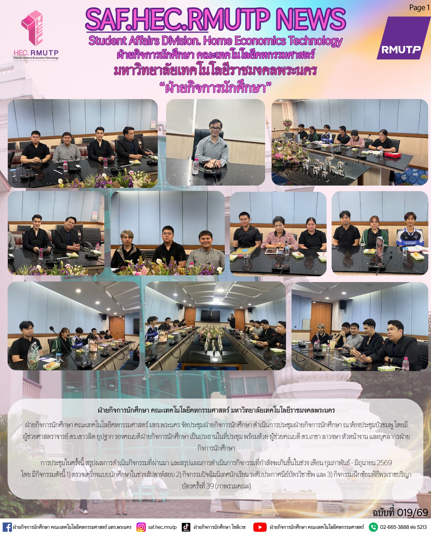 ดำเนินการประชุมฝ่ายกิจการนักศึกษา ณ ห้องประชุมบัวชมพู โดยมี ผู้ช่วยศาสตราจารย์ ดร.เชาวลิต อุปฐาก รองคณบดีฝ่ายกิจการนักศึกษา เป็นประธานในที่ประชุม พร้อมด้วย ผู้ช่วยคณบดี ดร.เกชา ลาวงษา หัวหน้างาน และบุคลากรฝ่ายกิจการนักศึกษา