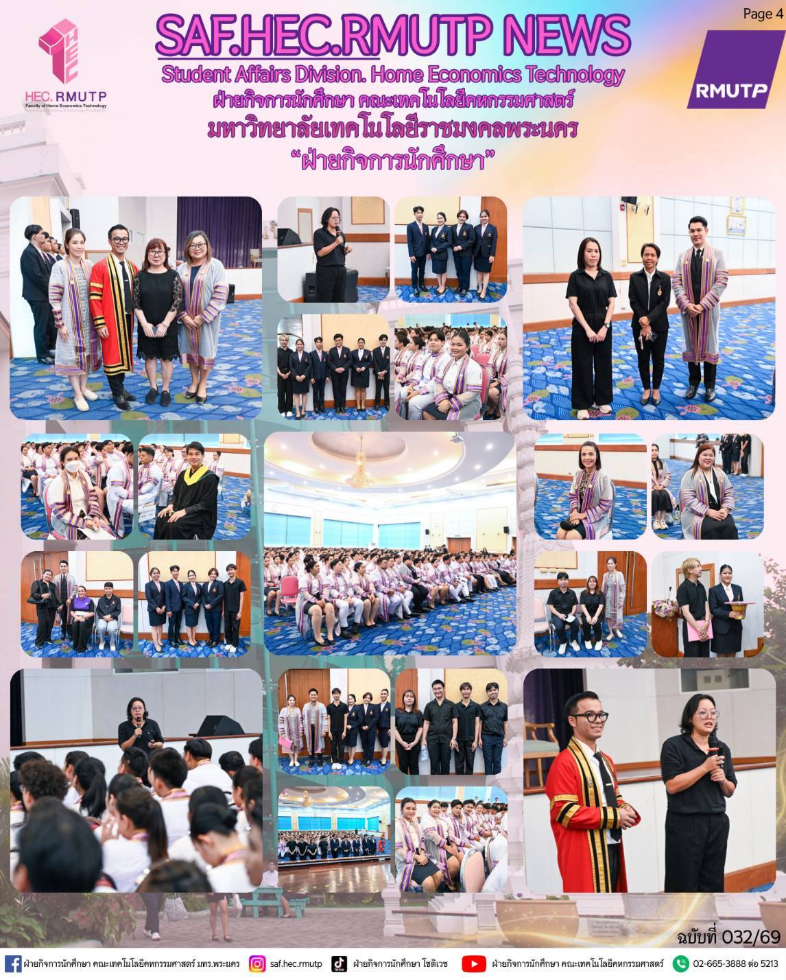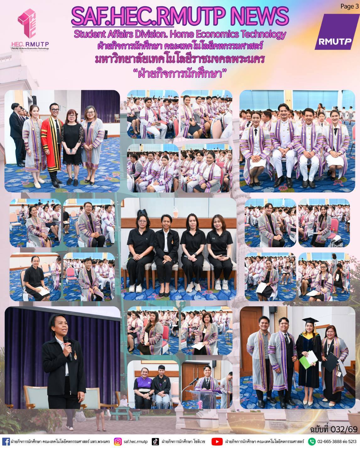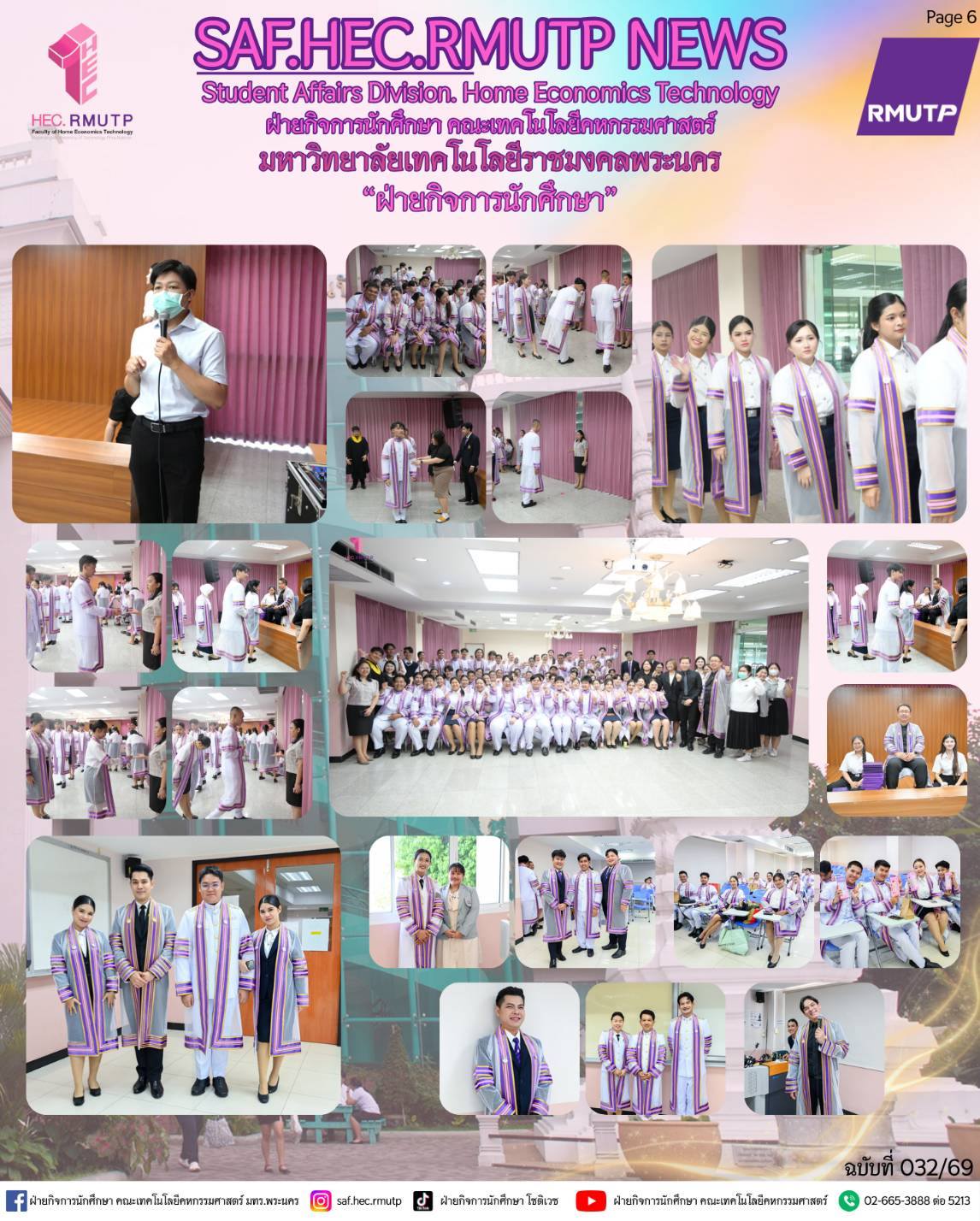 ได้รับเกียรติจาก อาจารย์ปิยะธิดา สีหะวัฒนกุล ที่ปรึกษาคณบดี กล่าวแสดงความยินดีแก่บัณฑิตผู้สำเร็จการศึกษา และคุณวรรณา มณีนุตร์ นายกสมาคมศิษย์เก่าโชติเวช ขึ้นกล่าวแสดงความยินดีแก่ผู้สำเร็จการศึกษา พร้อมด้วย ผู้ช่วยศาสตราจารย์ ดร.เชาวลิต อุปฐาก รองคณบดีฝ่ายกิจการนักศึกษา คณะผู้บริหาร และคณาจารย์ ร่วมพิธีเพื่อสร้างขวัญกำลังใจ และความภาคภูมิใจแก่บัณฑิตทุกคน เมื่อวันที่ 10 มีนาคม 2569 ณ ห้องประชุมโชติเวช ชั้น 4 อาคารเรือนปัญญา คณะเทคโนโลยีคหกรรมศาสตร์ มหาวิทยาลัยเทคโนโลยีราชมงคลพระนคร