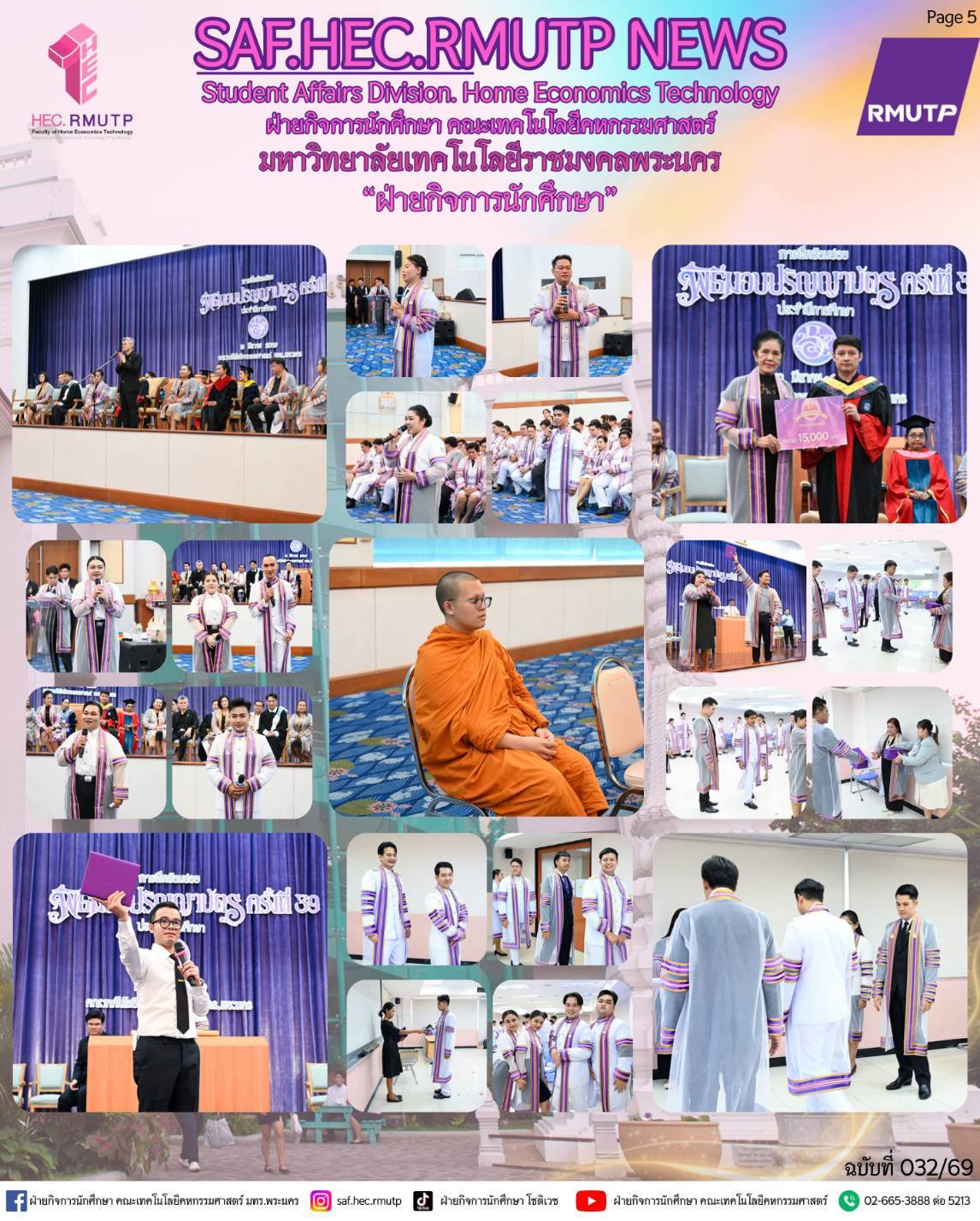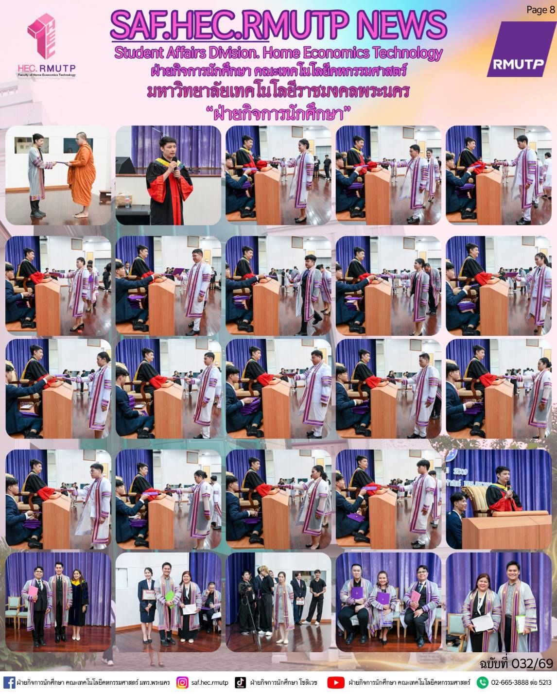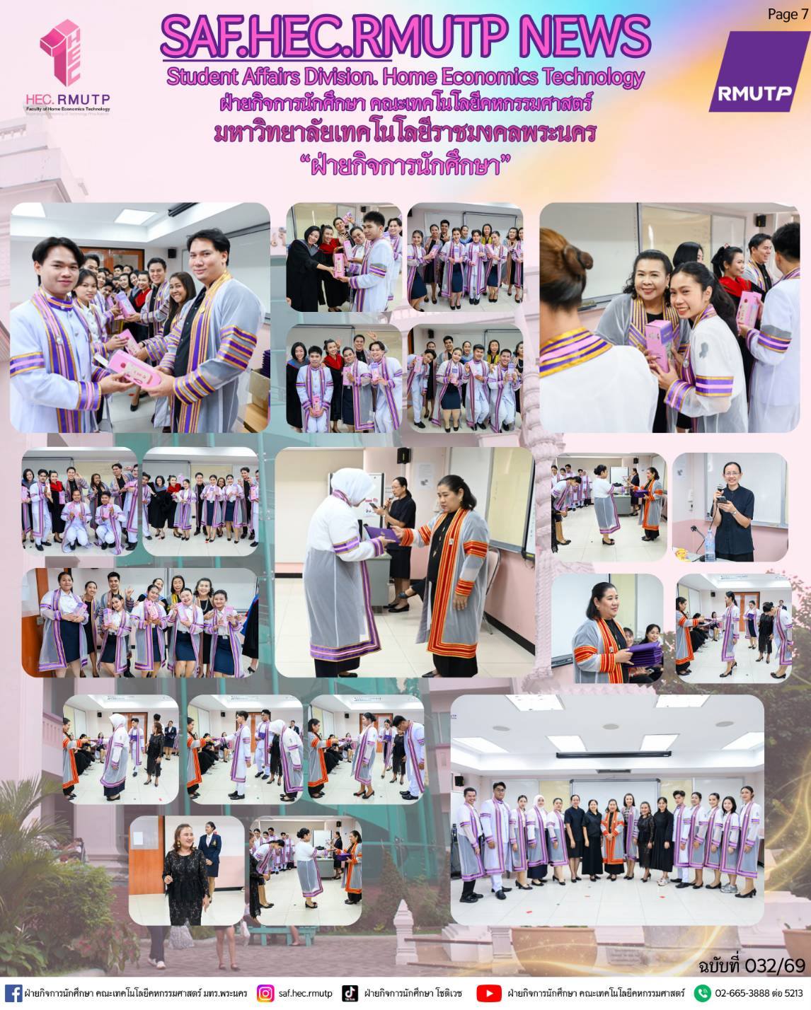 ได้รับเกียรติจาก อาจารย์ปิยะธิดา สีหะวัฒนกุล ที่ปรึกษาคณบดี กล่าวแสดงความยินดีแก่บัณฑิตผู้สำเร็จการศึกษา และคุณวรรณา มณีนุตร์ นายกสมาคมศิษย์เก่าโชติเวช ขึ้นกล่าวแสดงความยินดีแก่ผู้สำเร็จการศึกษา พร้อมด้วย ผู้ช่วยศาสตราจารย์ ดร.เชาวลิต อุปฐาก รองคณบดีฝ่ายกิจการนักศึกษา คณะผู้บริหาร และคณาจารย์ ร่วมพิธีเพื่อสร้างขวัญกำลังใจ และความภาคภูมิใจแก่บัณฑิตทุกคน เมื่อวันที่ 10 มีนาคม 2569 ณ ห้องประชุมโชติเวช ชั้น 4 อาคารเรือนปัญญา คณะเทคโนโลยีคหกรรมศาสตร์ มหาวิทยาลัยเทคโนโลยีราชมงคลพระนคร