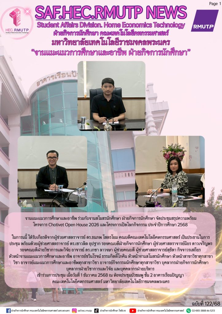 งานแนะแนวการศึกษาและอาชีพ ฝ่ายกิจการนักศึกษา คณะเทคโนโล […]