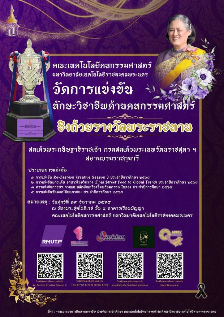 ขยาย เวลา แล้ว เวทีประชันความคิดสร้างสรรค์ระดับประเทศ! ชิงถ้วยพระราชทาน ด้านแฟชั่น • อาหาร • และคหกรรมศาสตร์ครบวงจร เลือกประเภทการแข่งขันที่ใช่ แล้วพาความสามารถของคุณออกมาแสดงให้โลกเห็น