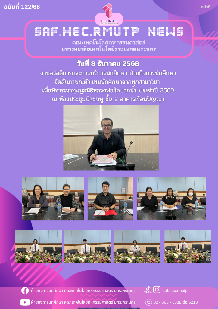 วันจันทร์ที่ 8 ธันวาคม 2568 เวลา 10.00 น. งานสวัสดิการแ […]