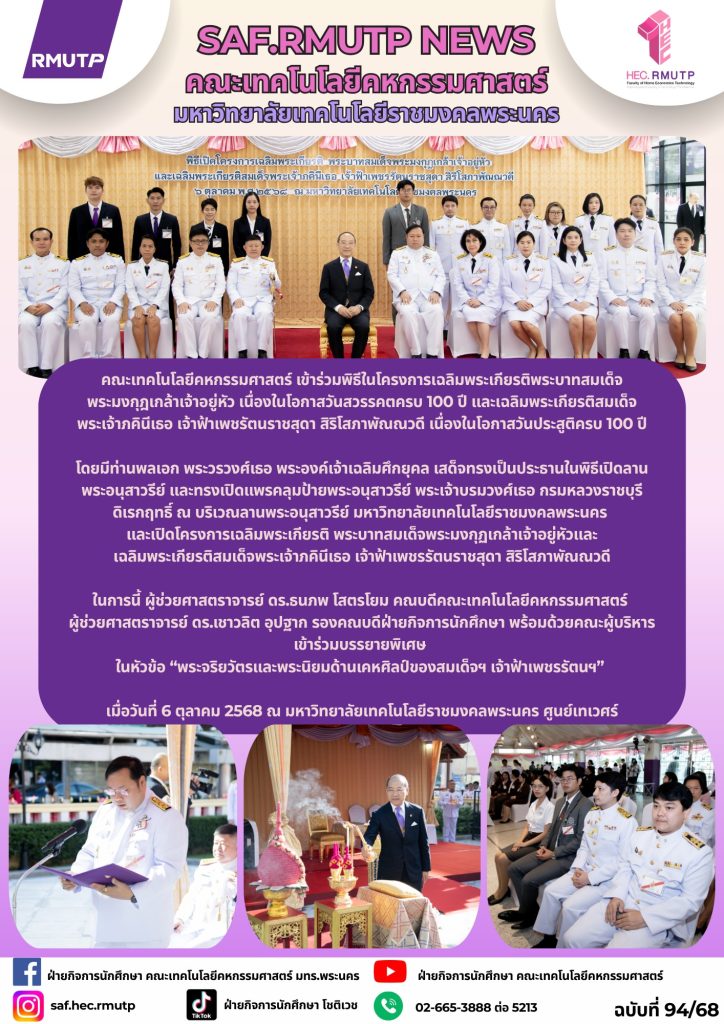 คณะเทคโนโลยีคหกรรมศาสตร์ เข้าร่วมพิธีในโครงการเฉลิมพระเกียรติ พระบาทสมเด็จพระมงกุฎเกล้าเจ้าอยู่หัว และเฉลิมพระเกียรติสมเด็จพระเจ้าภคินีเธอ เจ้าฟ้าเพชรรัตนราชสุดา สิริโสภาพัณณวดี